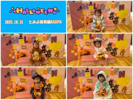 2025年10月31日☀️ とみよ保育園KASUYAでハロウィンパーティーが開催されました🎃🎃 待ちに待ったハロウィン🎃かわいい&かっこいい衣装を身にまとい、 ニコニコ笑顔の子ども