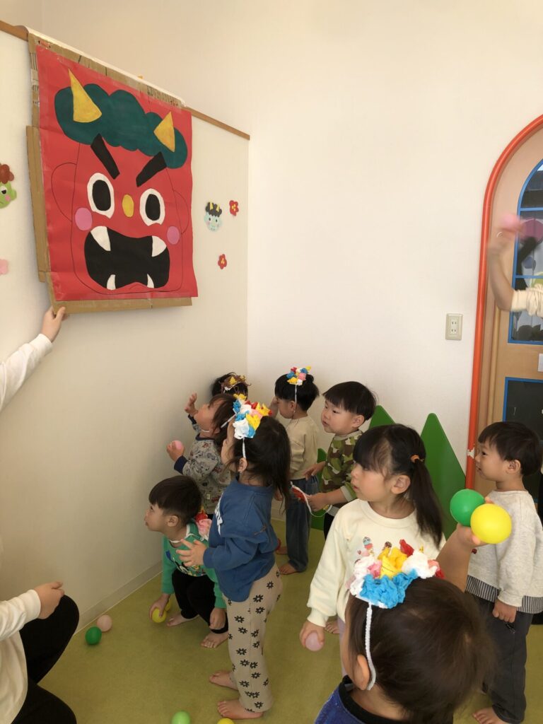 当日は、「おには〜そとー!」「ふくは〜うちー!」と大きな声で上手に言う事が出来ていました👏🏻