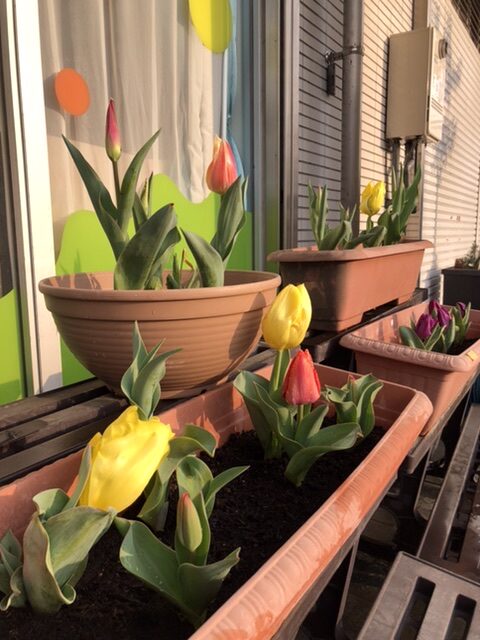暖かい光を浴びてチューリップが咲いてきました🌷
