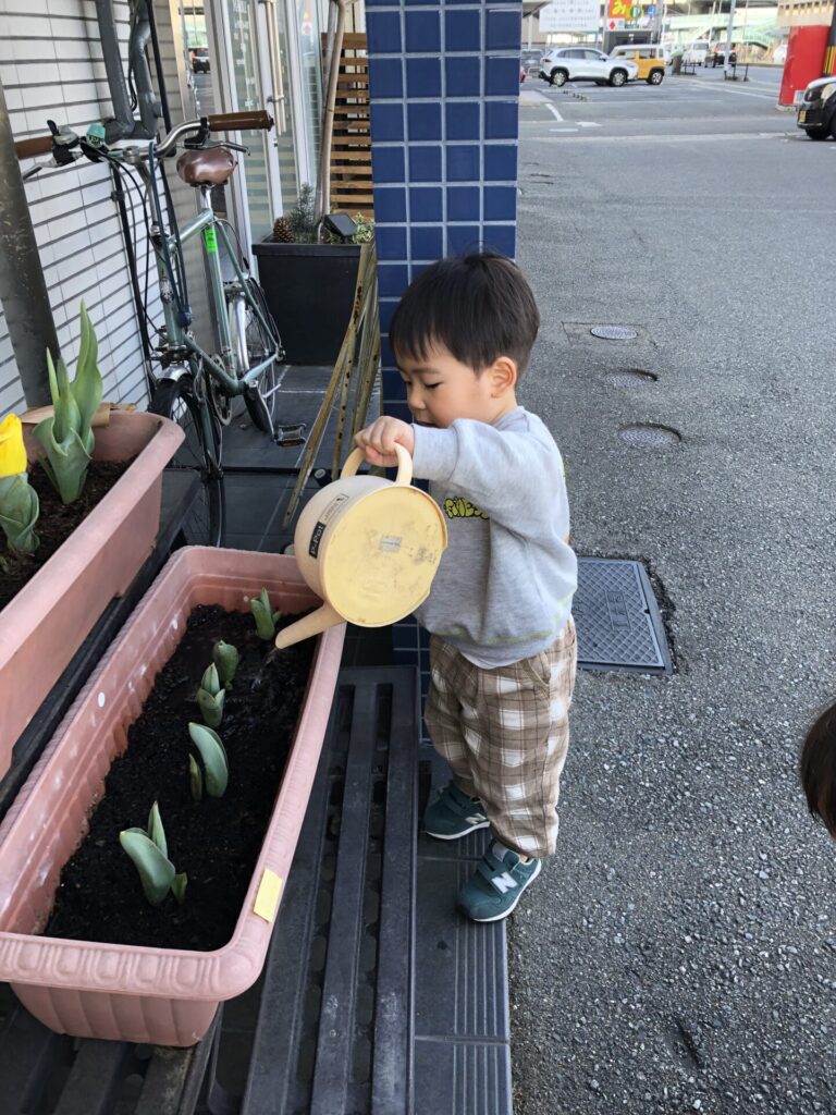 「咲いてる!」と嬉しそうに教えてくれています♪