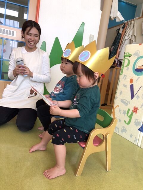 誕生日カードと王冠をもらって嬉しそうな表情♡