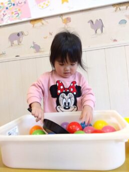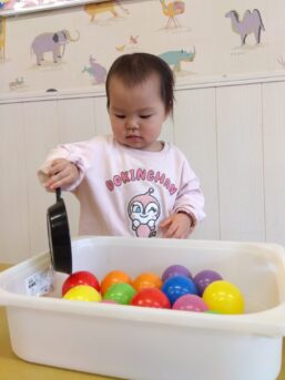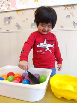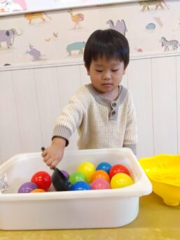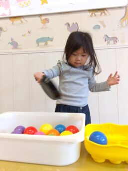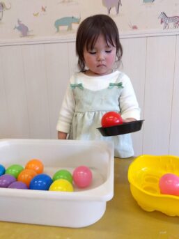 「いち、に…」と呟き数えながらボールを移動させたり