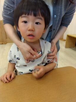 検温をしようとすると「ここでーす」と腕を出してくれるお友達、とても可愛らしいですね😍