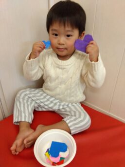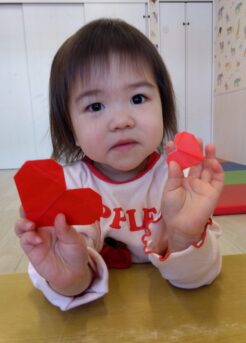 保育園では、バレンタインデーにちなんでハート型おりがみで様々な色に触れながら遊んでみました🎶