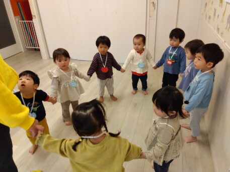 『ABCの歌』ではみんなで手を繋いで一つの輪になり、