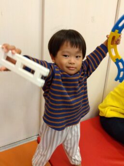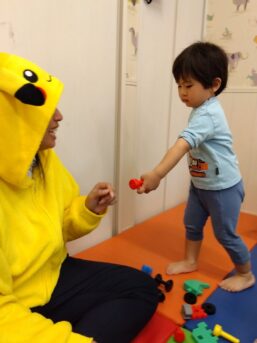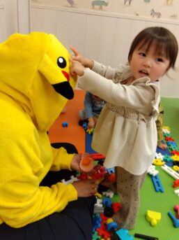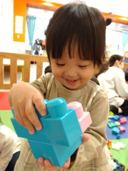 ブロックを組むのを手伝ってもらったり