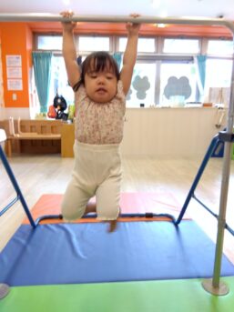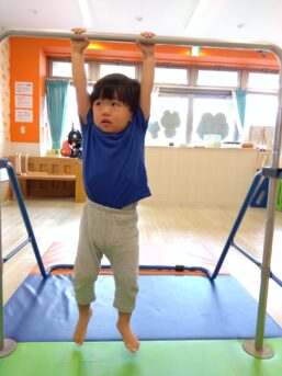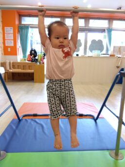 手や腕に力を入れて、鉄棒にもしっかりと掴まることが出来るようになっています!!