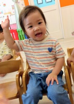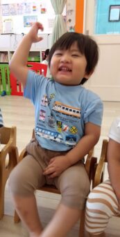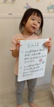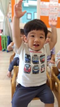 英語教室では挨拶や色、形、身体のパーツなど様々な言葉に触れて楽しんでいます🤗