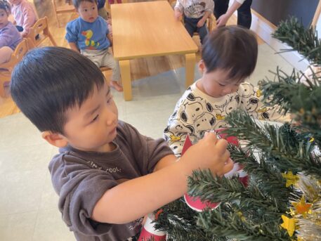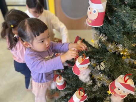 完成したオーナメントをみんなで飾り付けしました🧡💛