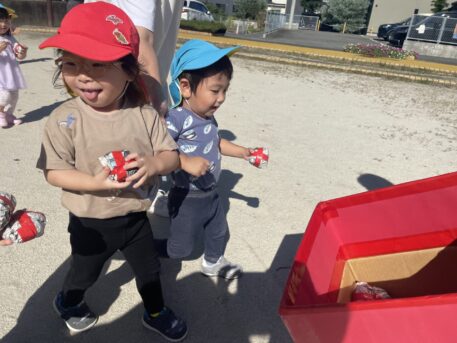 0歳児さんはお兄ちゃんお姉ちゃんに引っ張ってもらってゴール🚩