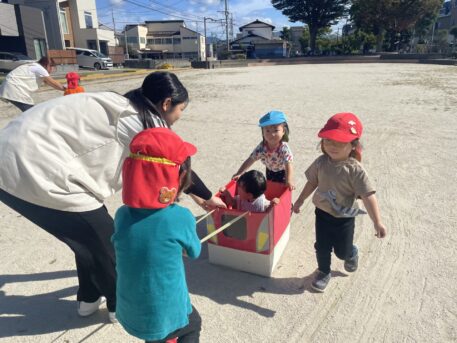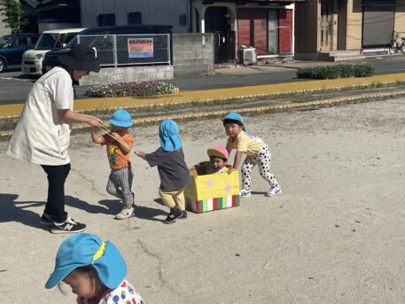 先生たちも子どもをおんぶして走ります🌻とっても速いね🎵