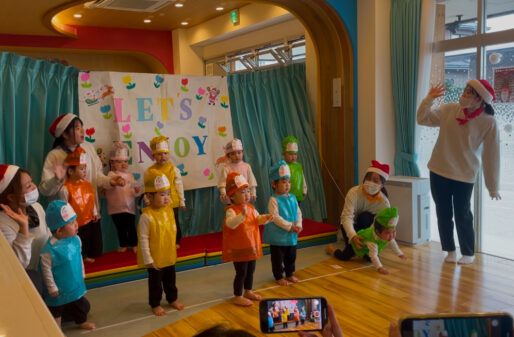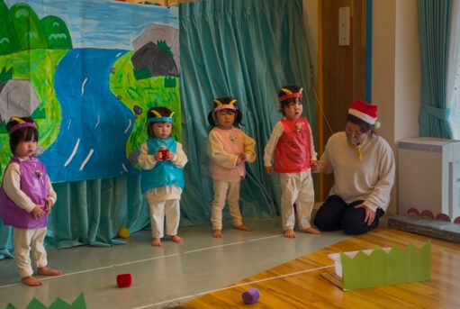 子どもたちが保育園で楽しい遊びをたくさん見つけて、その中から今回のクリスマス会での表現遊びを発表させていただきました😊🌈