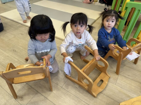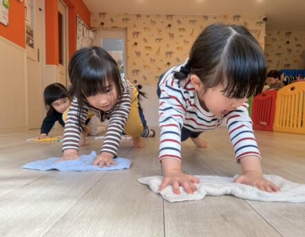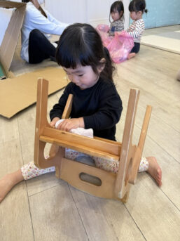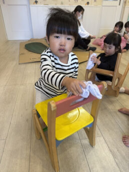 椅子やロッカー、床の雑巾がけをしながら、「よーいドン!」で競争すると笑顔いっぱいで張り切ってお掃除してくれました🧼