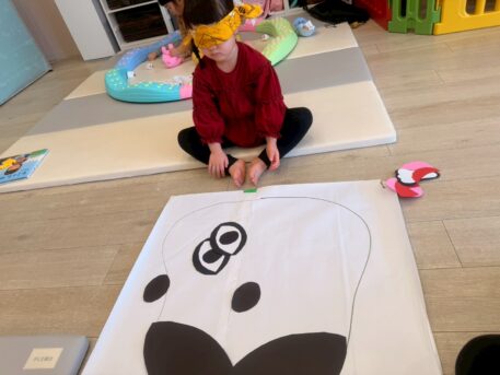 目隠しをしてできた思いがけない顔に子どもたちも大笑い😂
