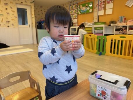 土曜保育の日の登園人数は少ないですが、それぞれが好きな遊びを思いきり楽しむことができるので、子ども達も朝から「紐通ししたい!」「粘土するー!」とたくさんリクエストしてくれます☺️
