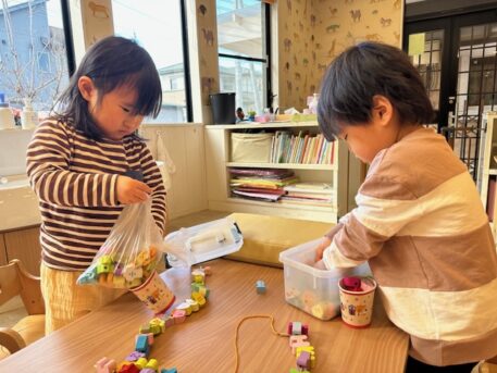 土曜保育の日の登園人数は少ないですが、それぞれが好きな遊びを思いきり楽しむことができるので、子ども達も朝から「紐通ししたい!」「粘土するー!」とたくさんリクエストしてくれます☺️