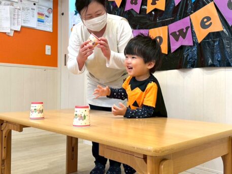 子ども達も「こっちのカップだよ!」「すごーい!」「何色かな?」と興味津々で参加していました🧡