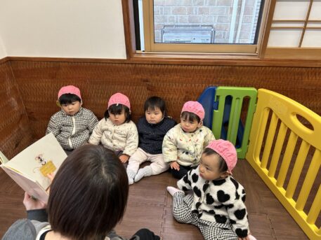 「まめまき」の歌や「おにのパンツ」の体操に合わせてノリノリの子どもたちですが、「鬼さん怖い😱」とか、「鬼さん来る?」と不安そうな顔で聞いてくる時も…👹「病気の鬼、おこりんぼ鬼、泣き
