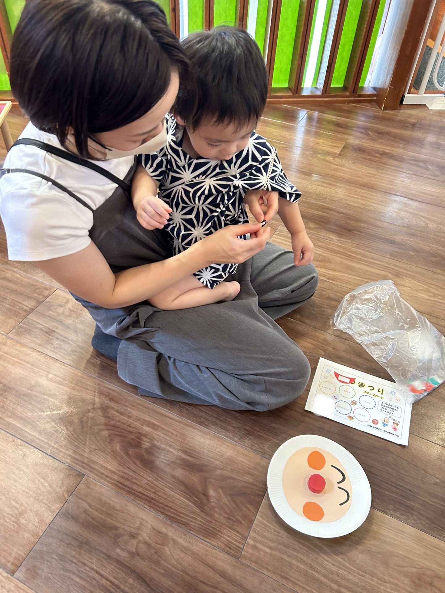 アンパンマンのコマ作りや、先生達手作りの的当て🎯、金魚すくい🐟、たこ焼きビンゴ🐙をしました😆✨