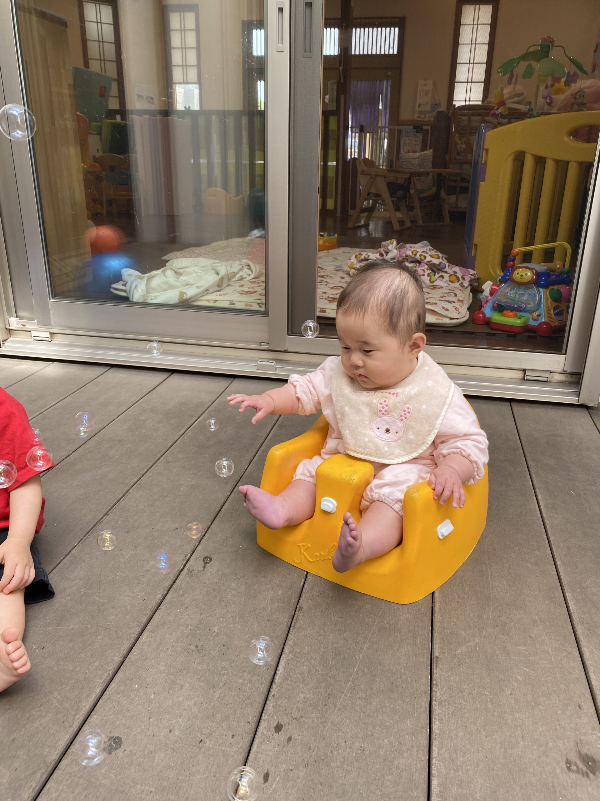 歩けるお友達は、先生としっかり手を繋ぎ🤝