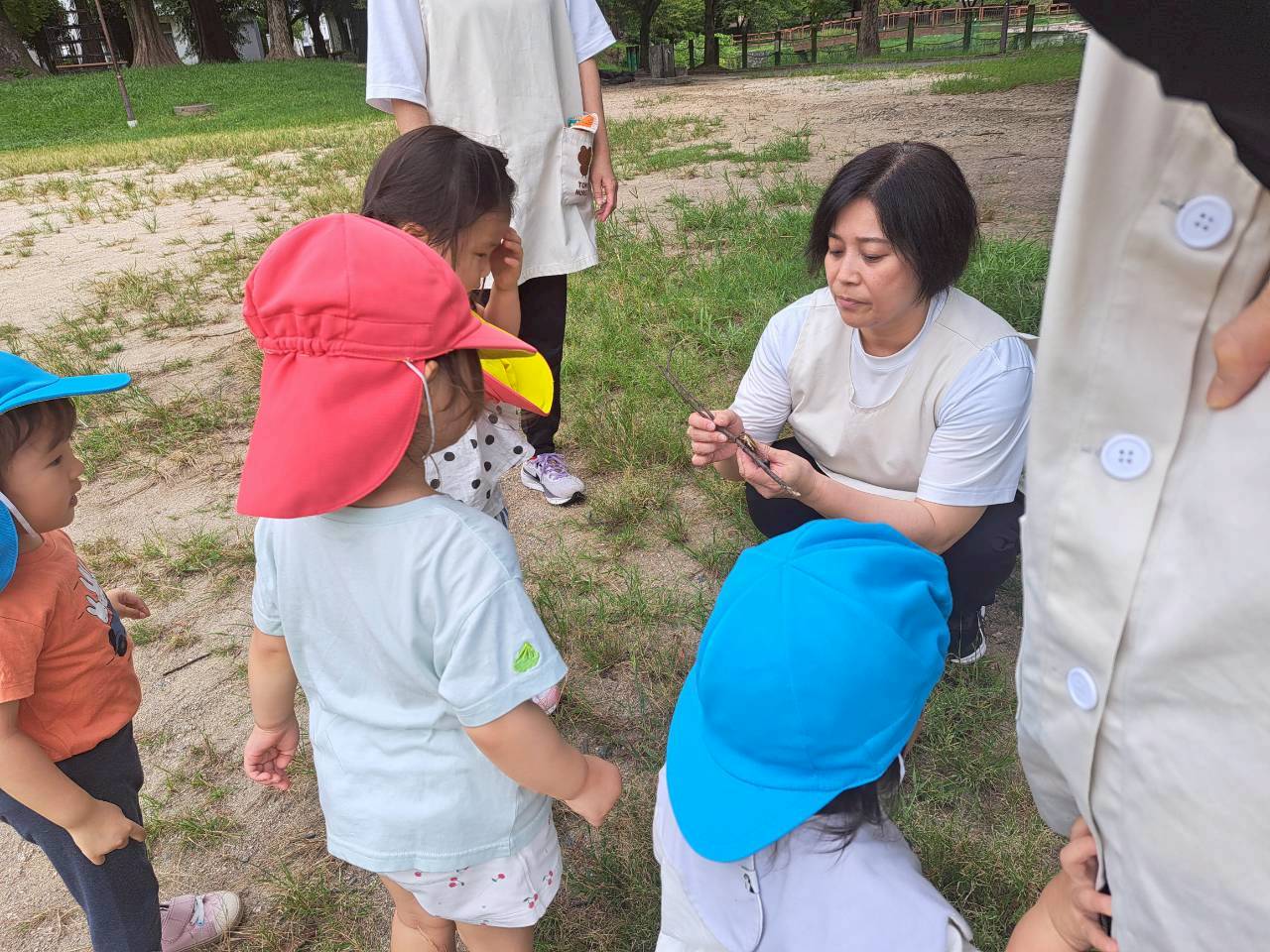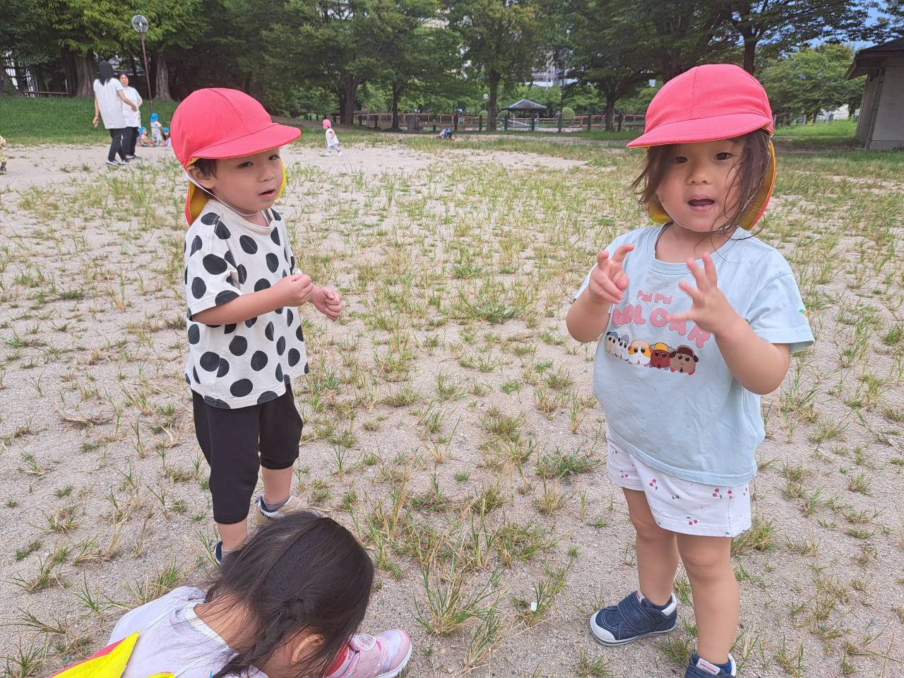 涼しい日は久しぶりにお散歩に行きました♪以前はカートに乗ってお散歩に行っていたひよこ組のお友だちも、今では自分の足で頑張って歩いています!成長を感じますね😊