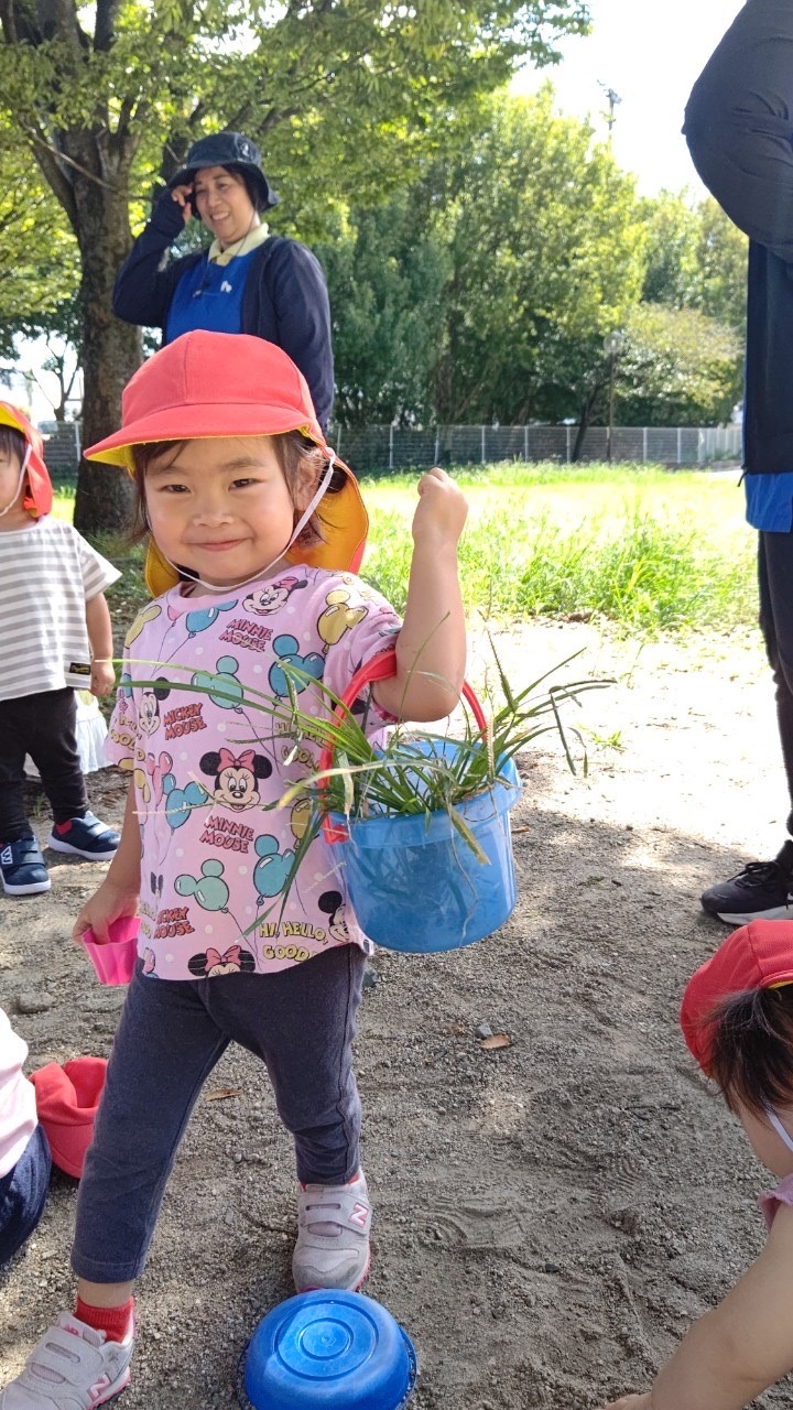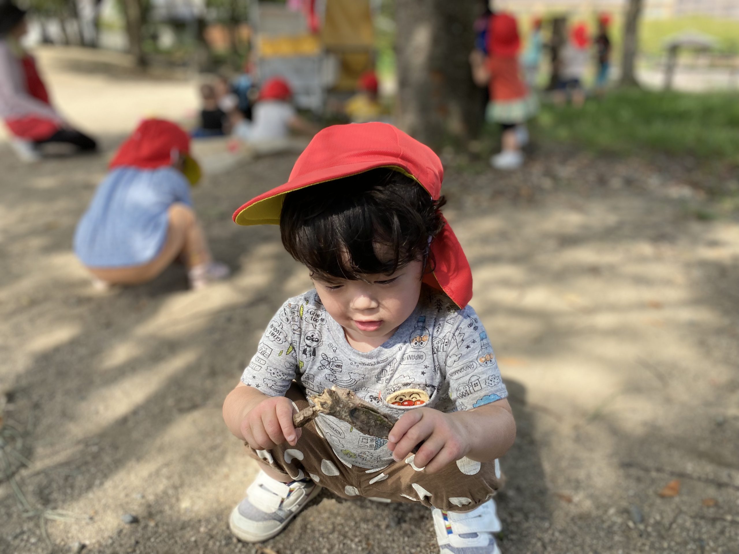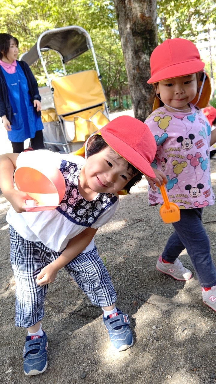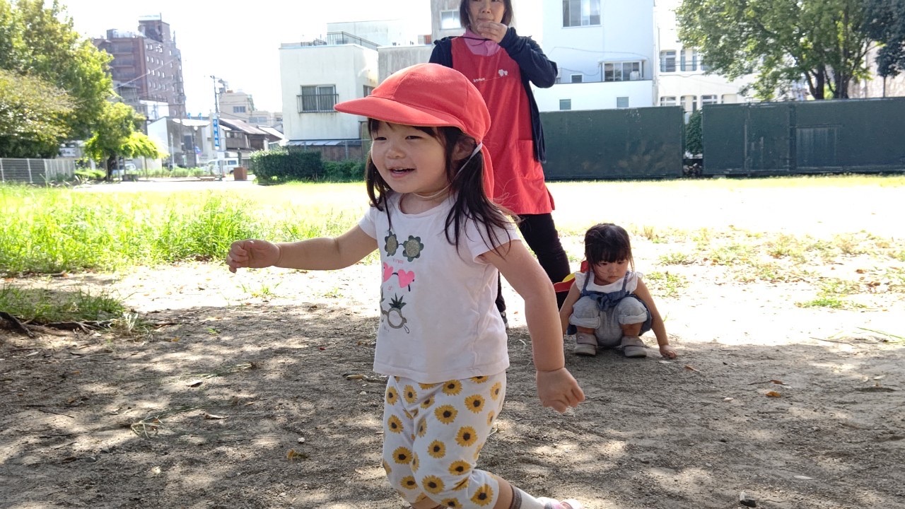 日中はまだ汗ばむ日がありますが、中央公園では砂遊びやかけっこ、バッタ探しをして、元気いっぱい遊びました😊
