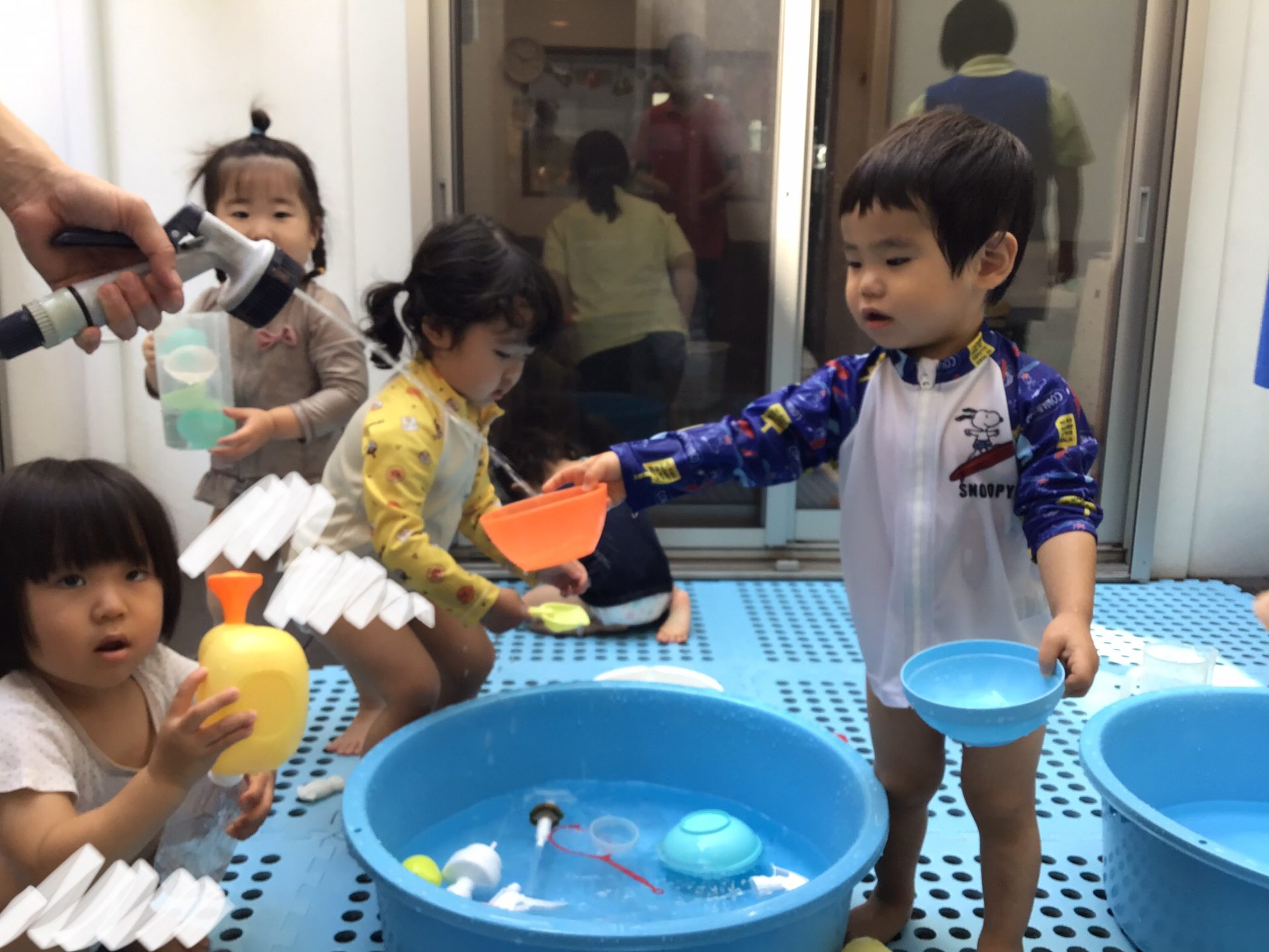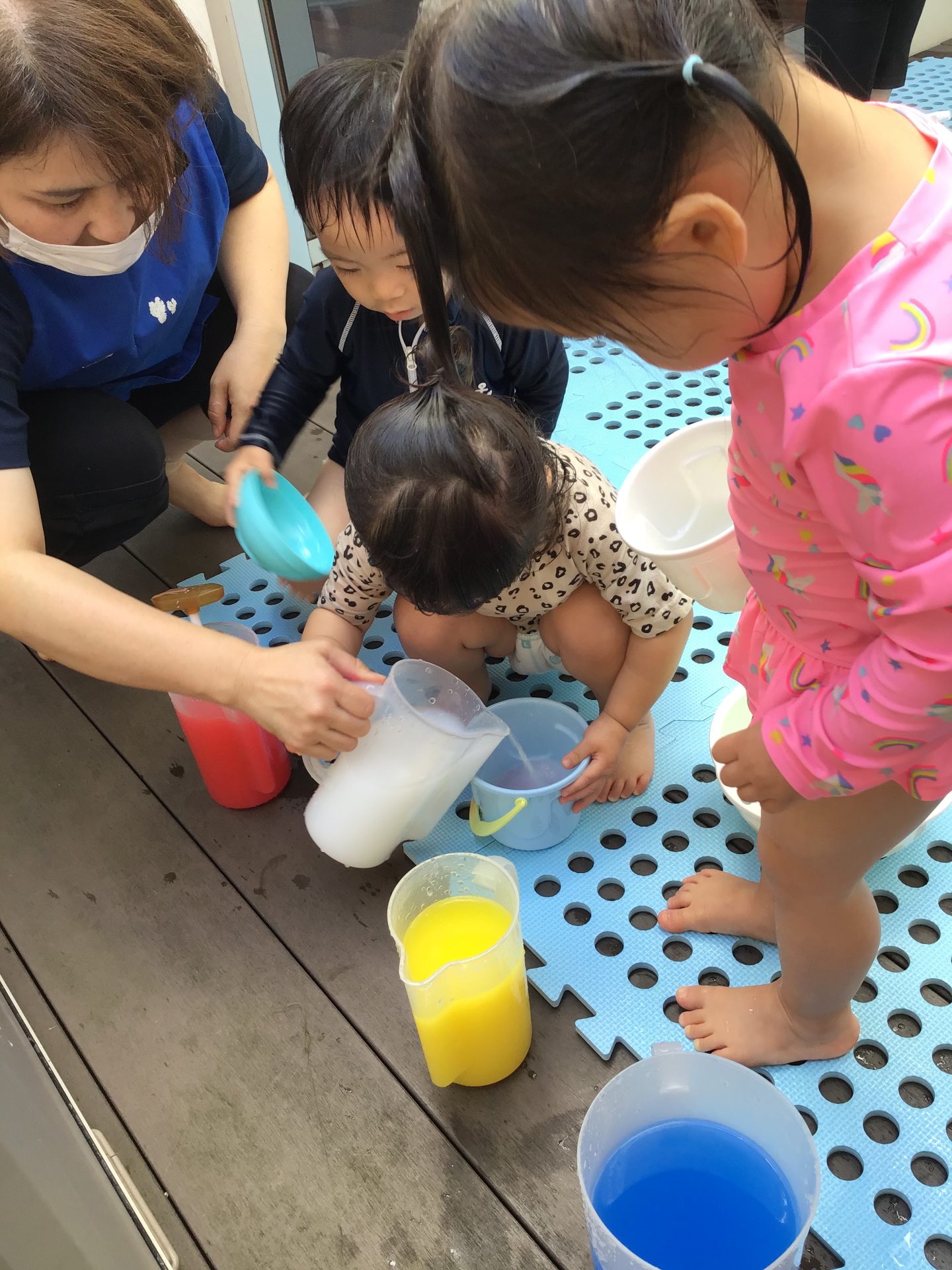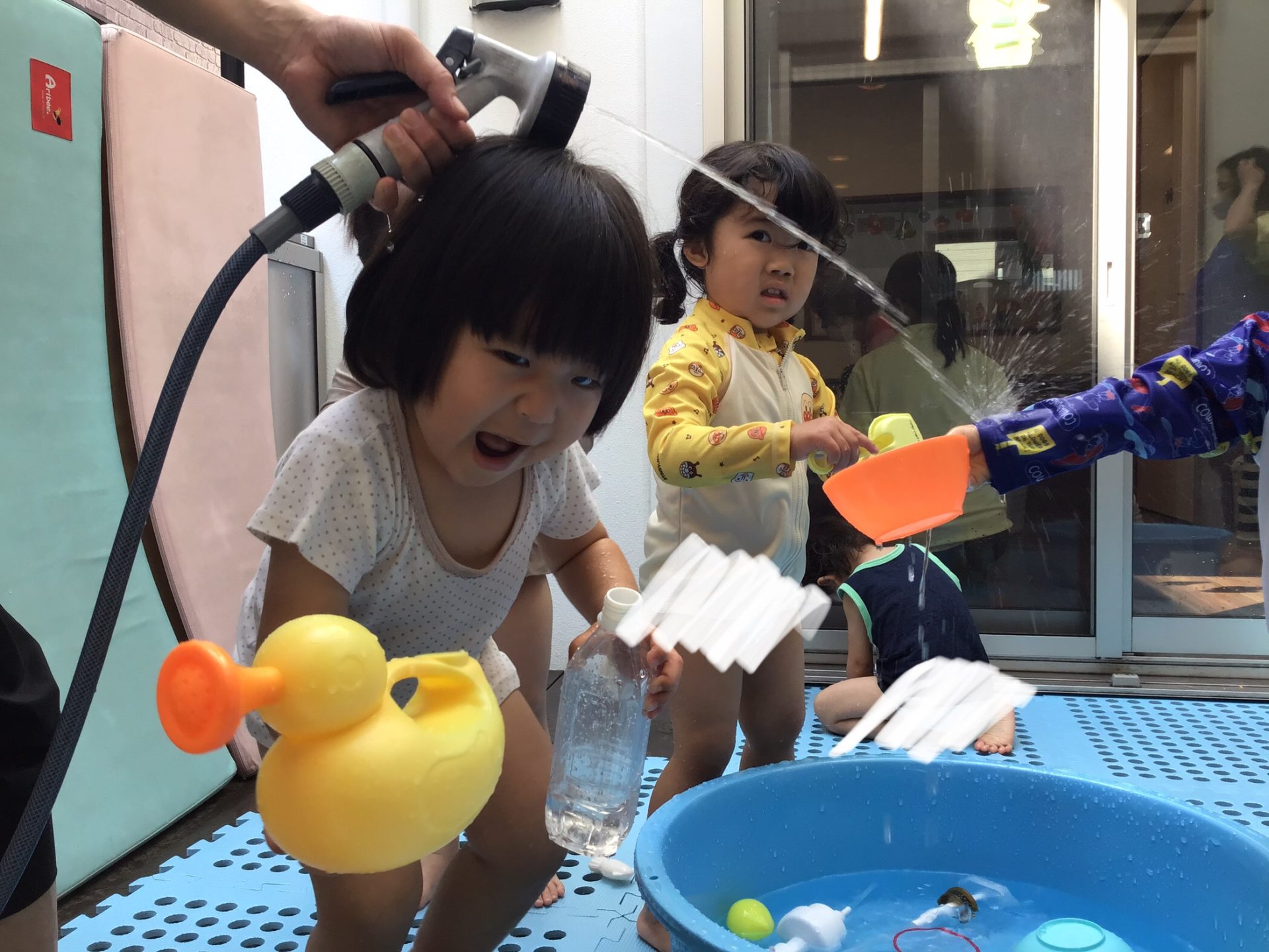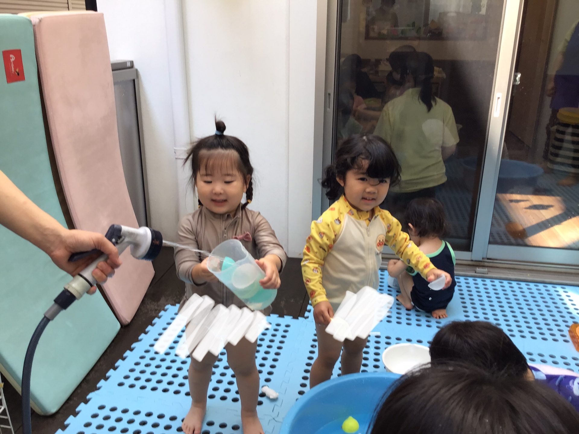 今週も各クラス、テラスで水遊びを楽しんでいます😆💕