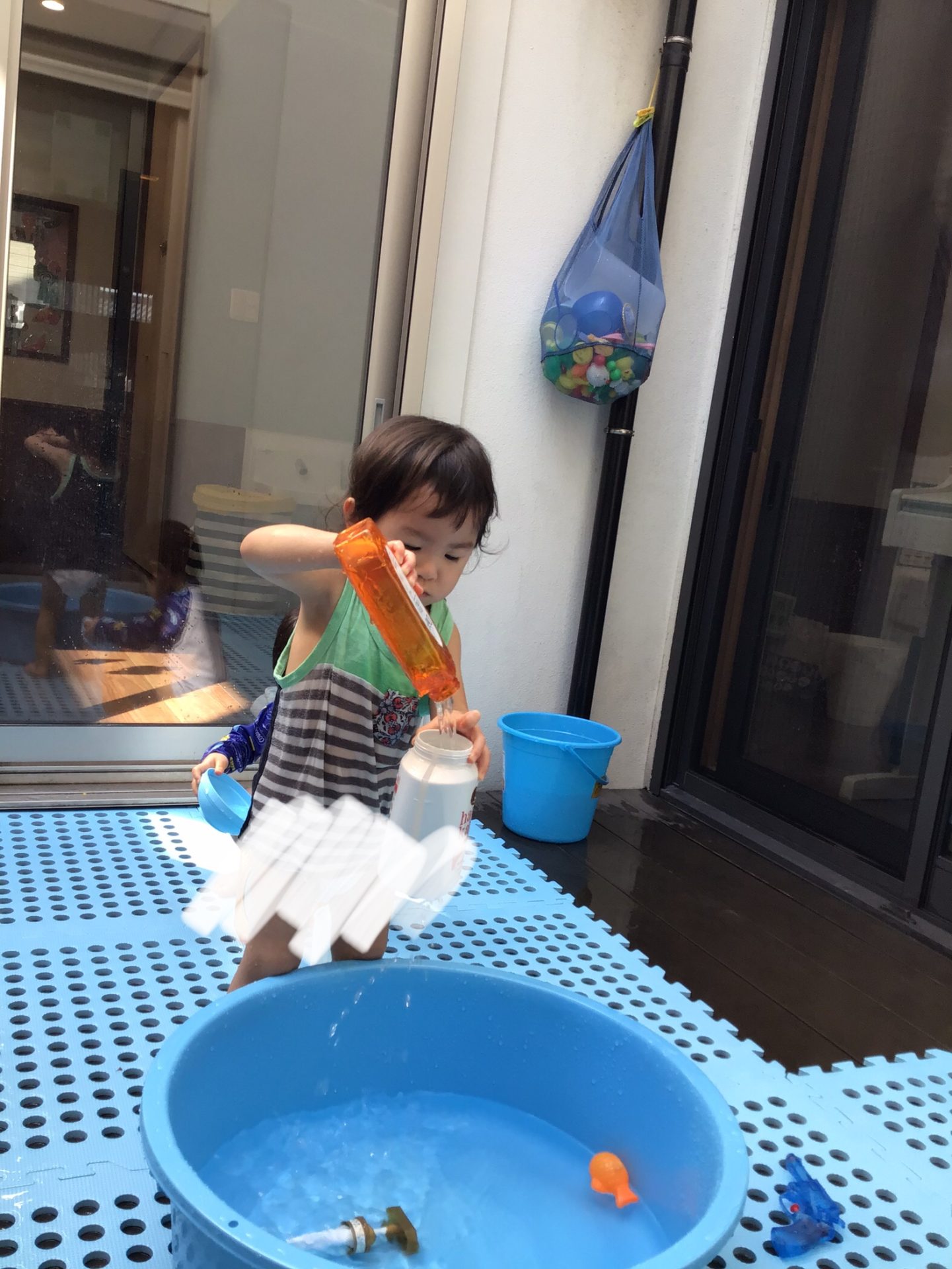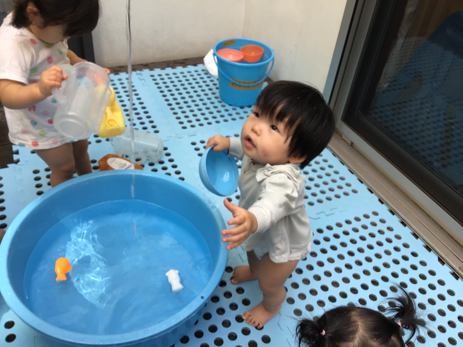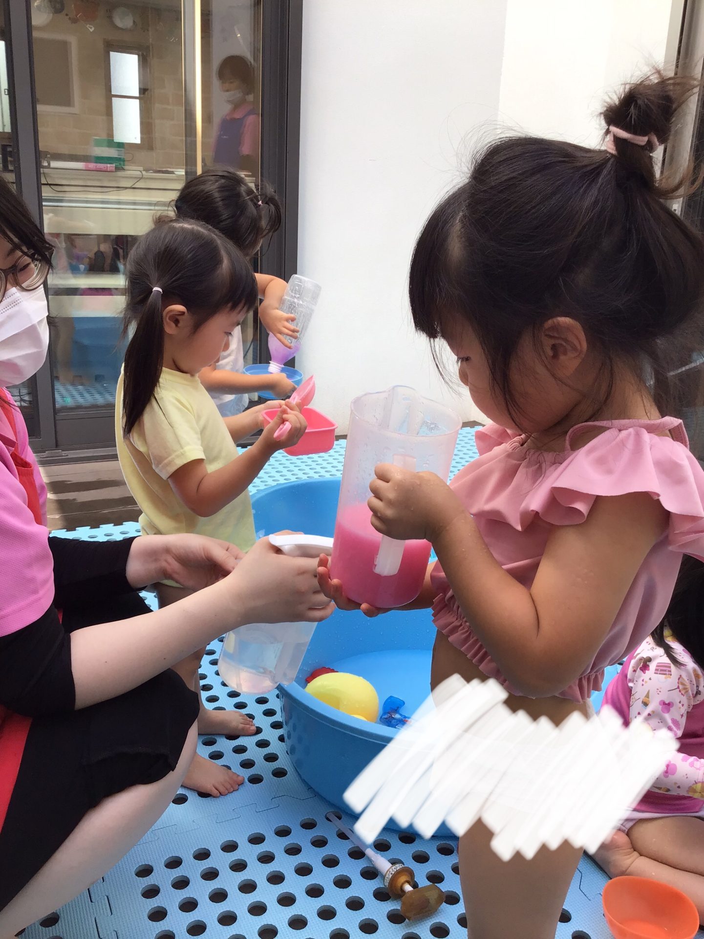 今週も各クラス、テラスで水遊びを楽しんでいます😆💕