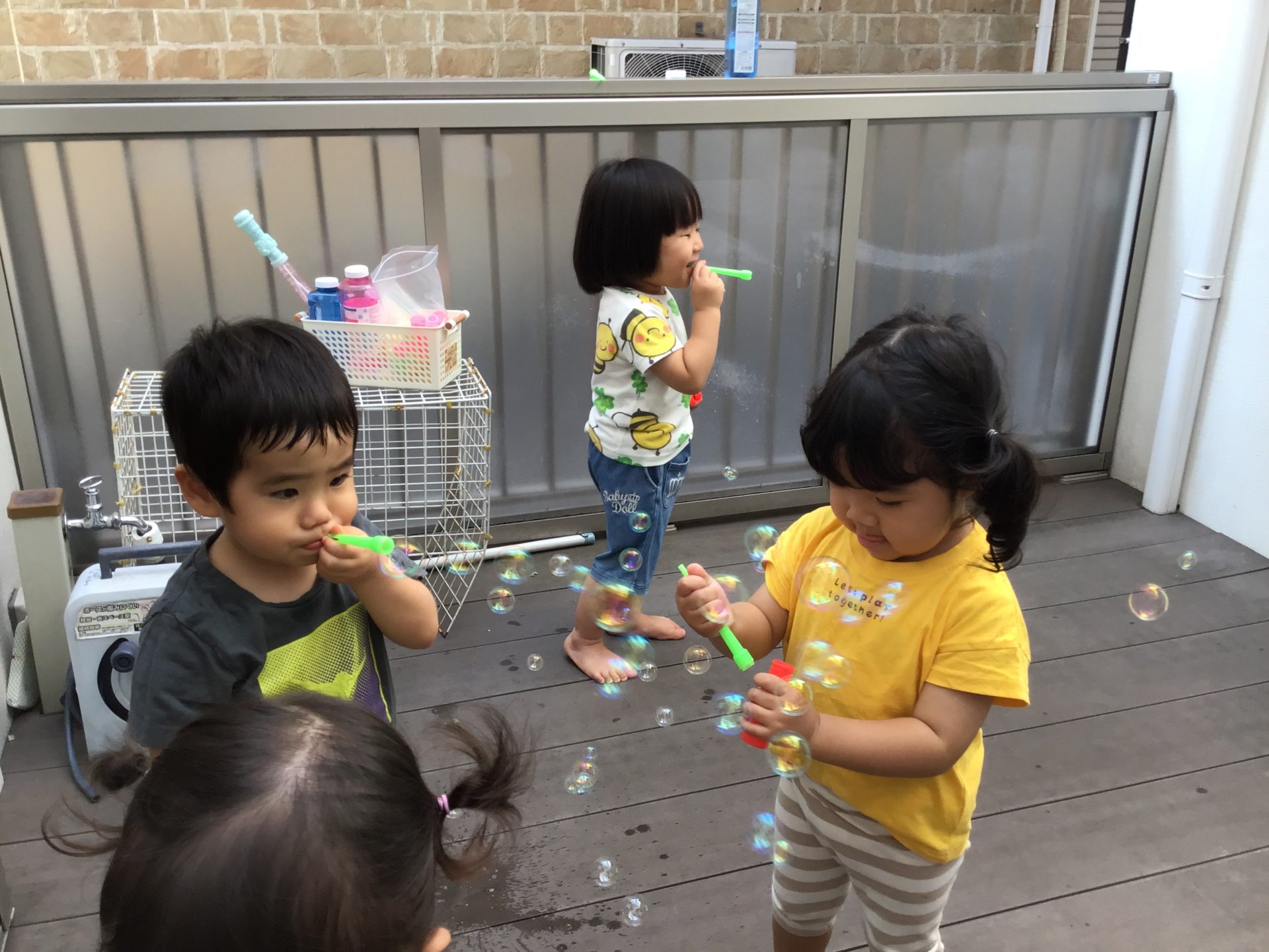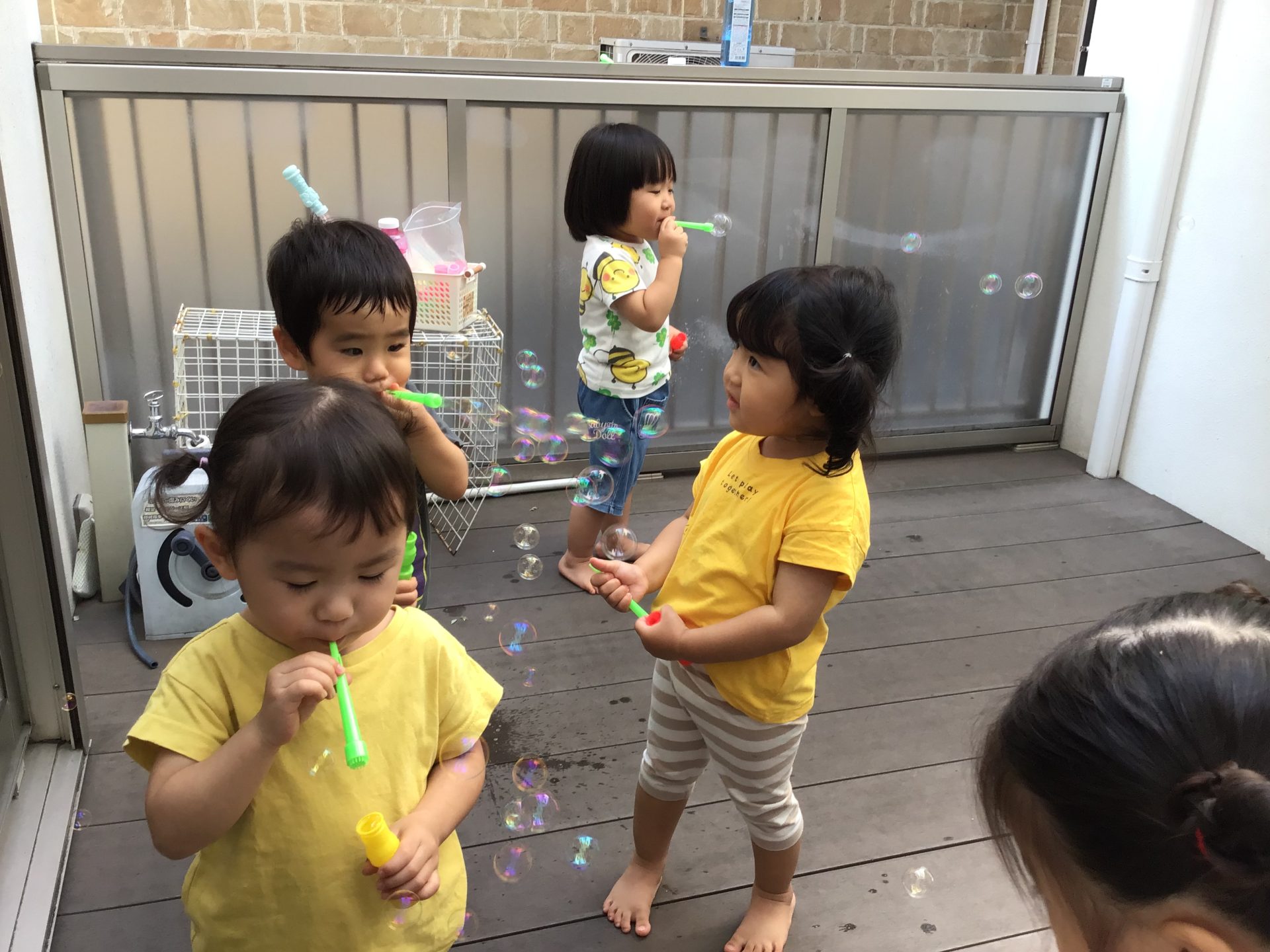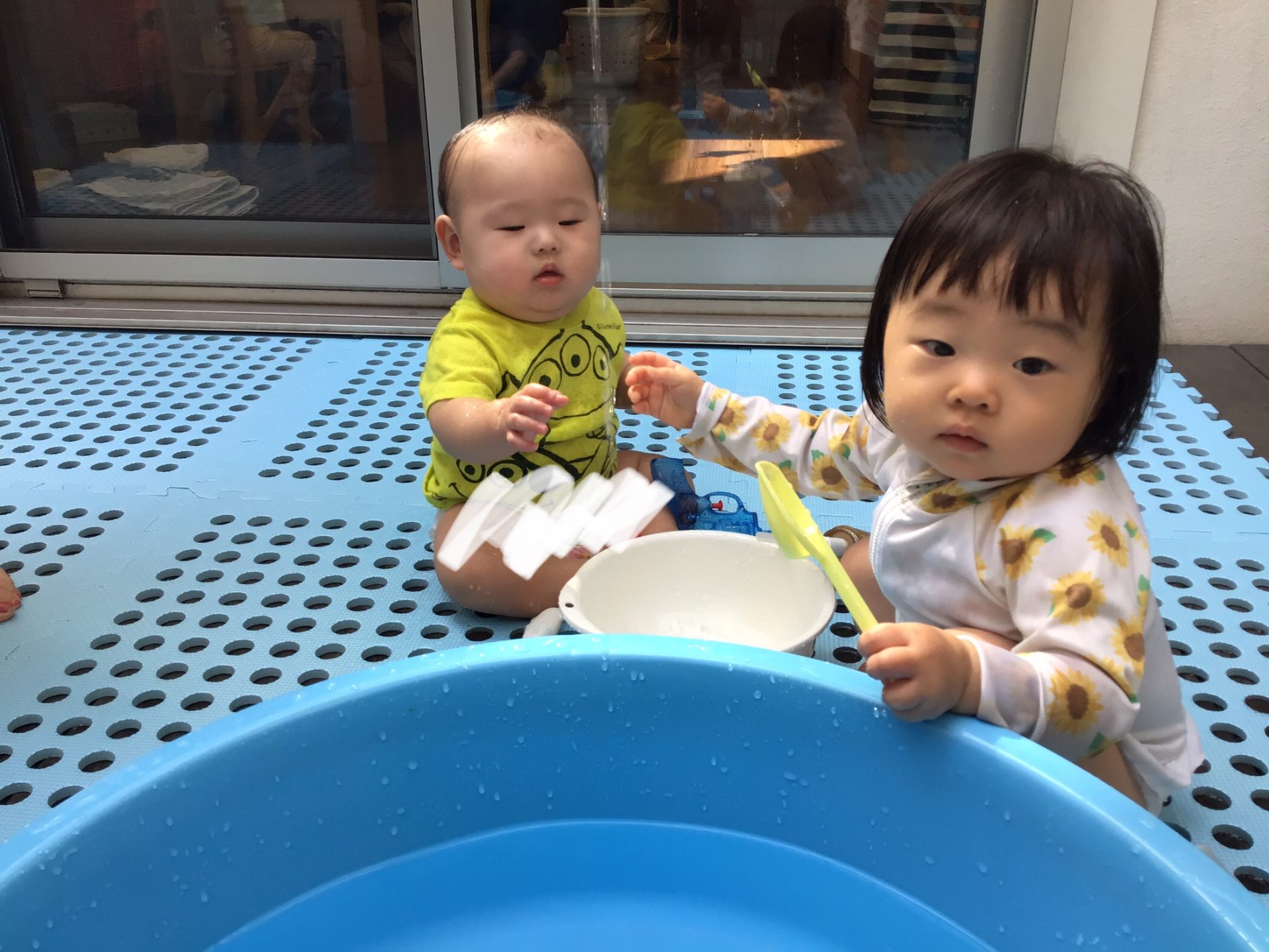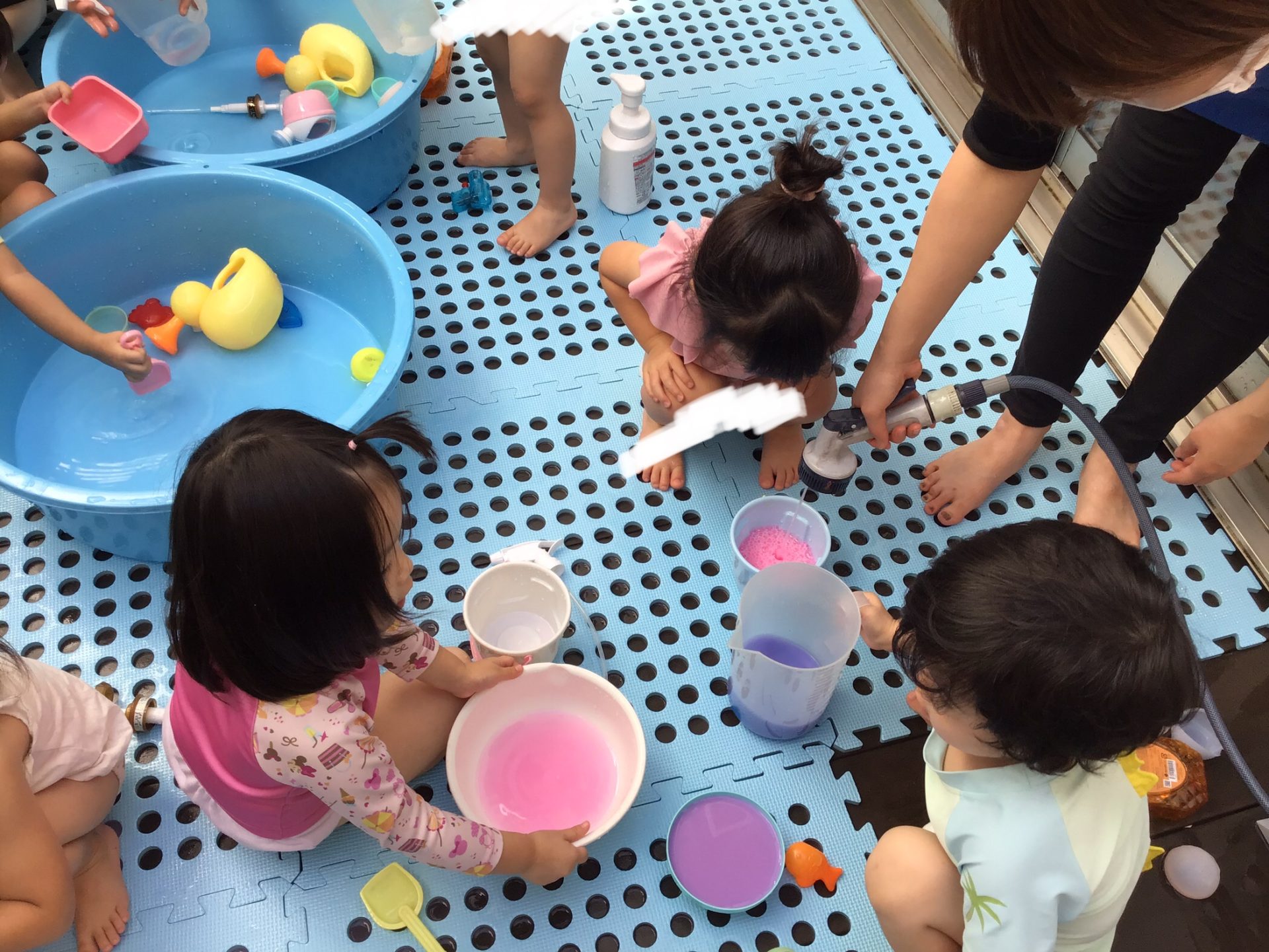 今週も各クラス、テラスで水遊びを楽しんでいます😆💕
