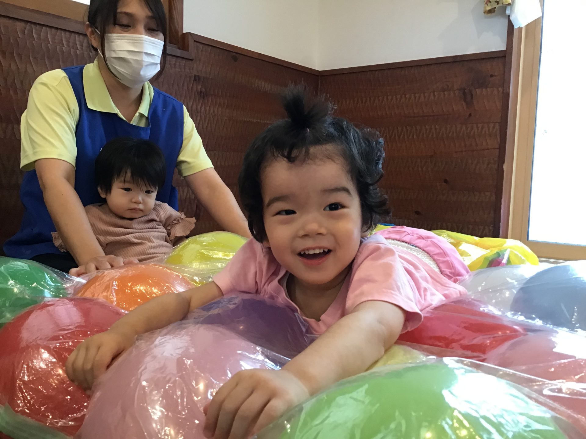 室内では風船マット🎈に乗って感触を楽しんだり、絵本で数字のお勉強をしたり、折り紙や制作をして過ごしています😊