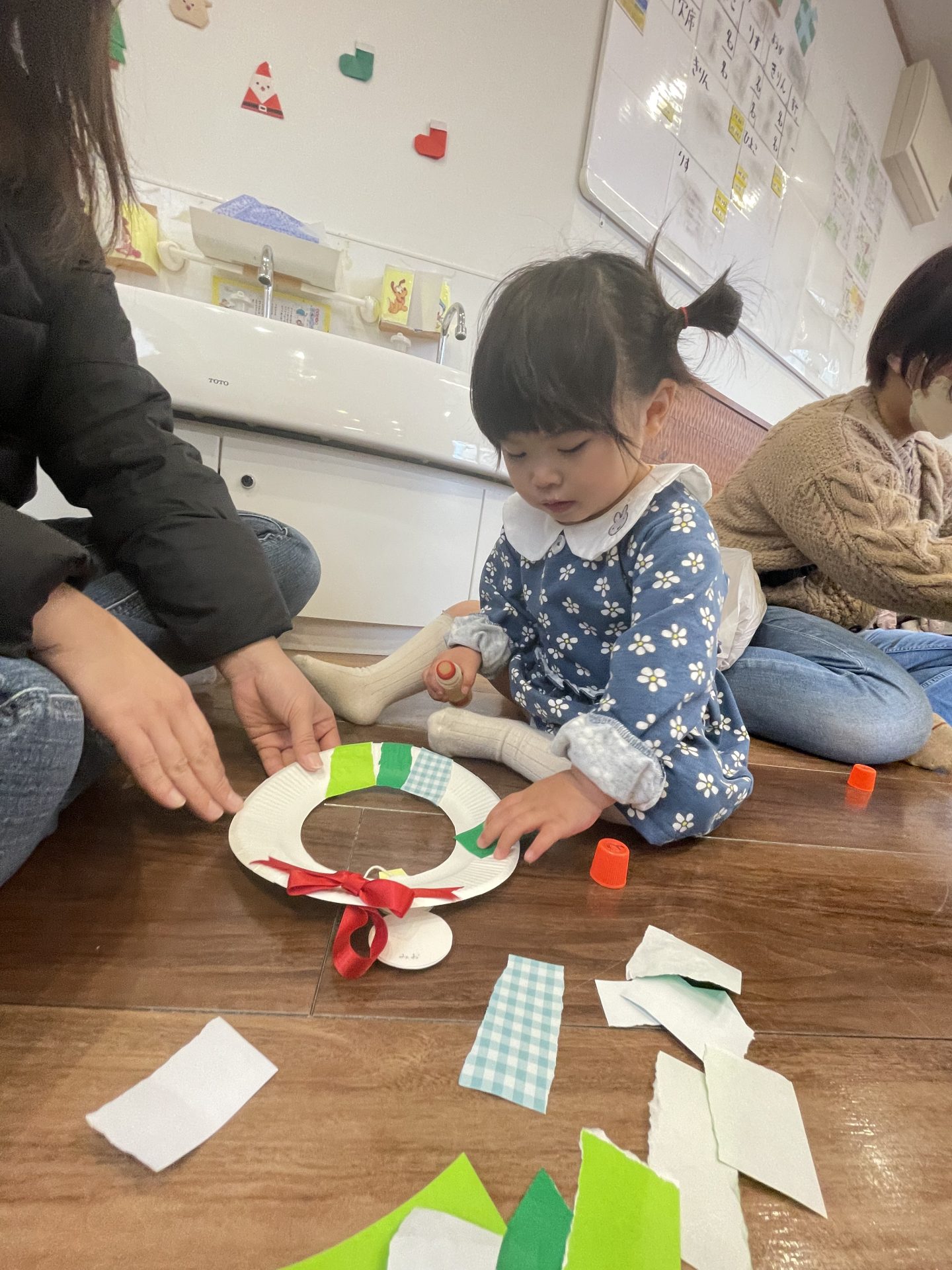 保護者の方と一緒に、クリスマスリースを作る製作をしました🥰✨