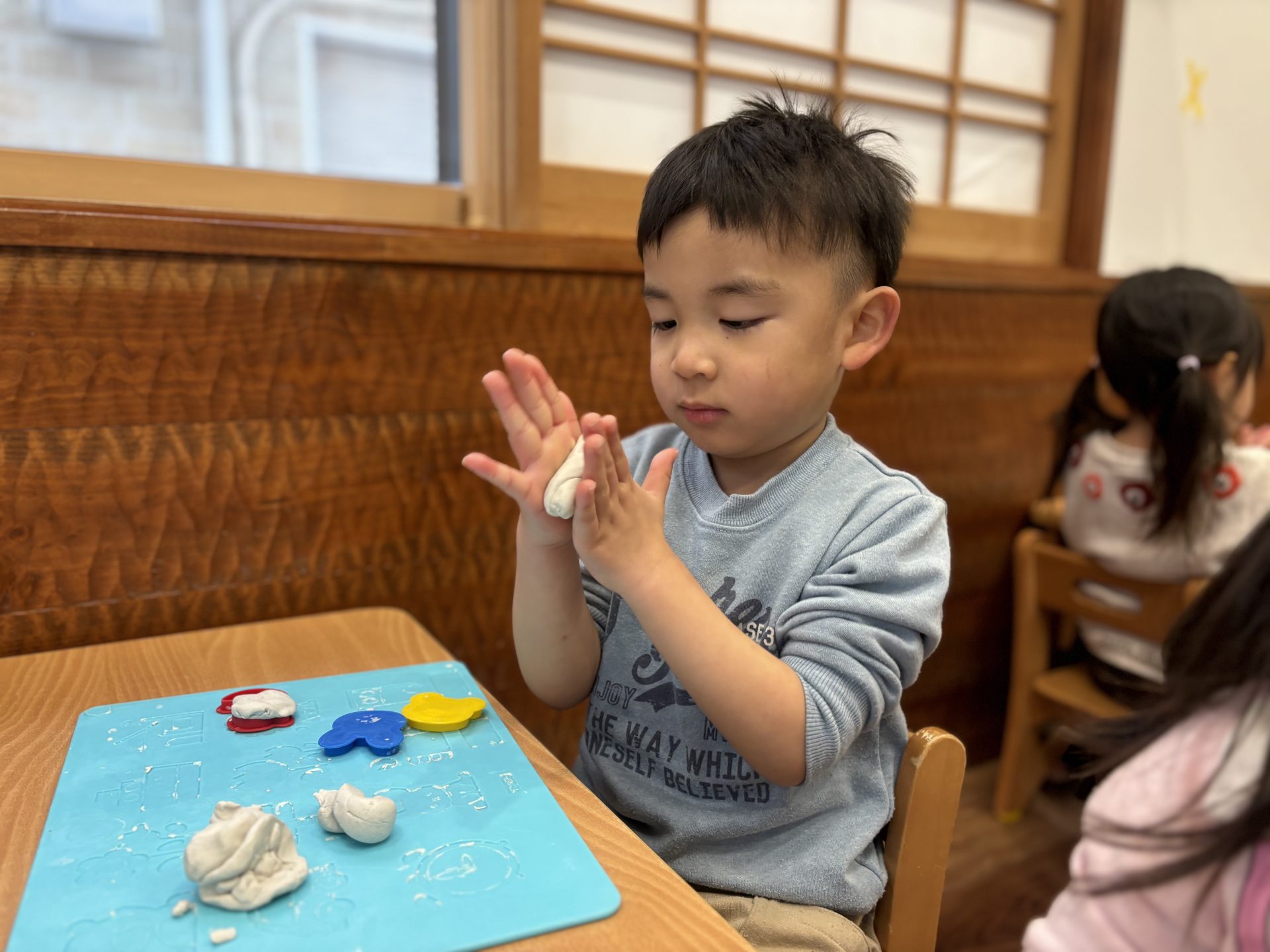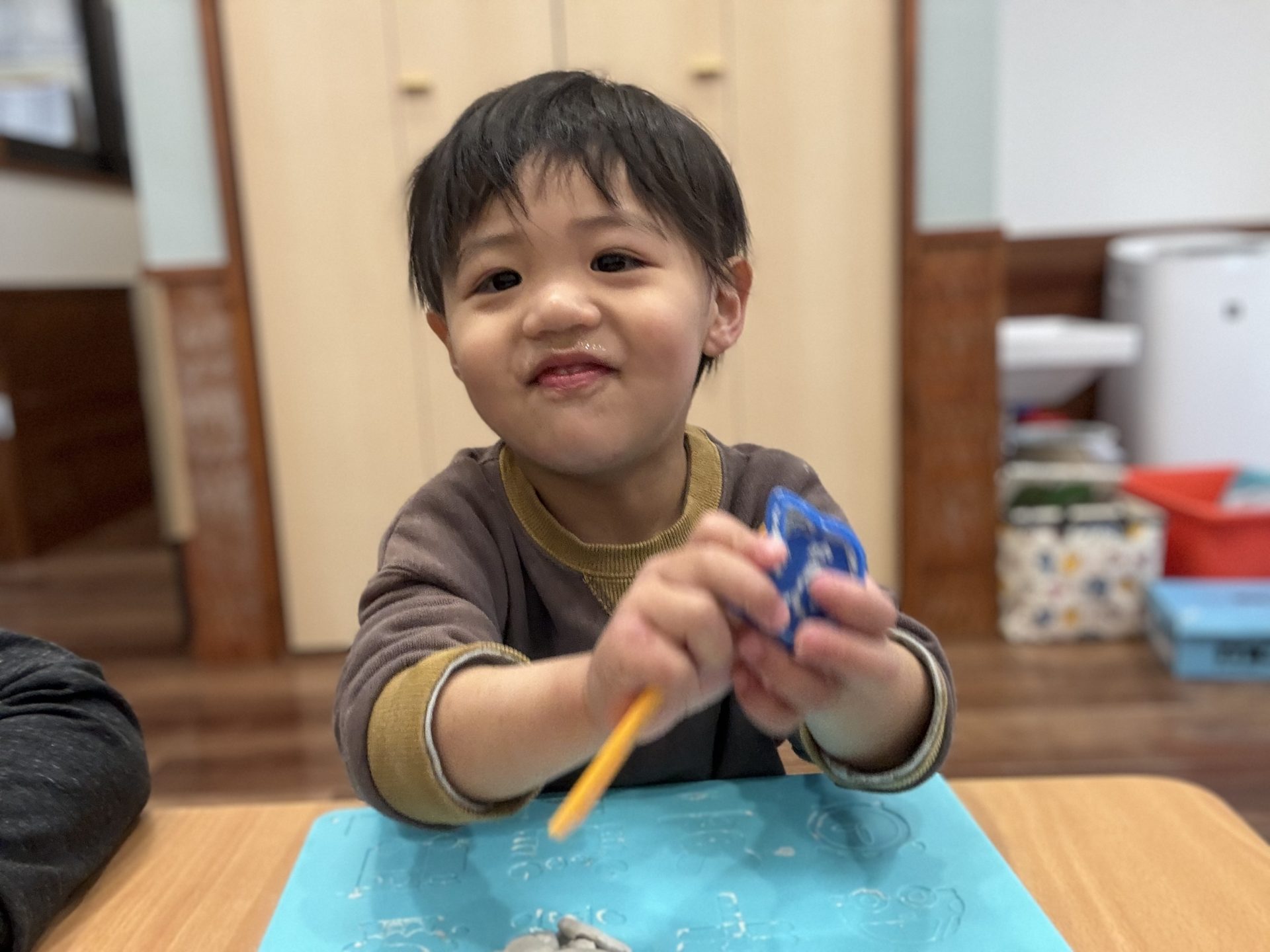 雨の日☂️は室内でハサミ✂️の練習や粘土、新聞紙🗞遊びをして過ごしました😆💕