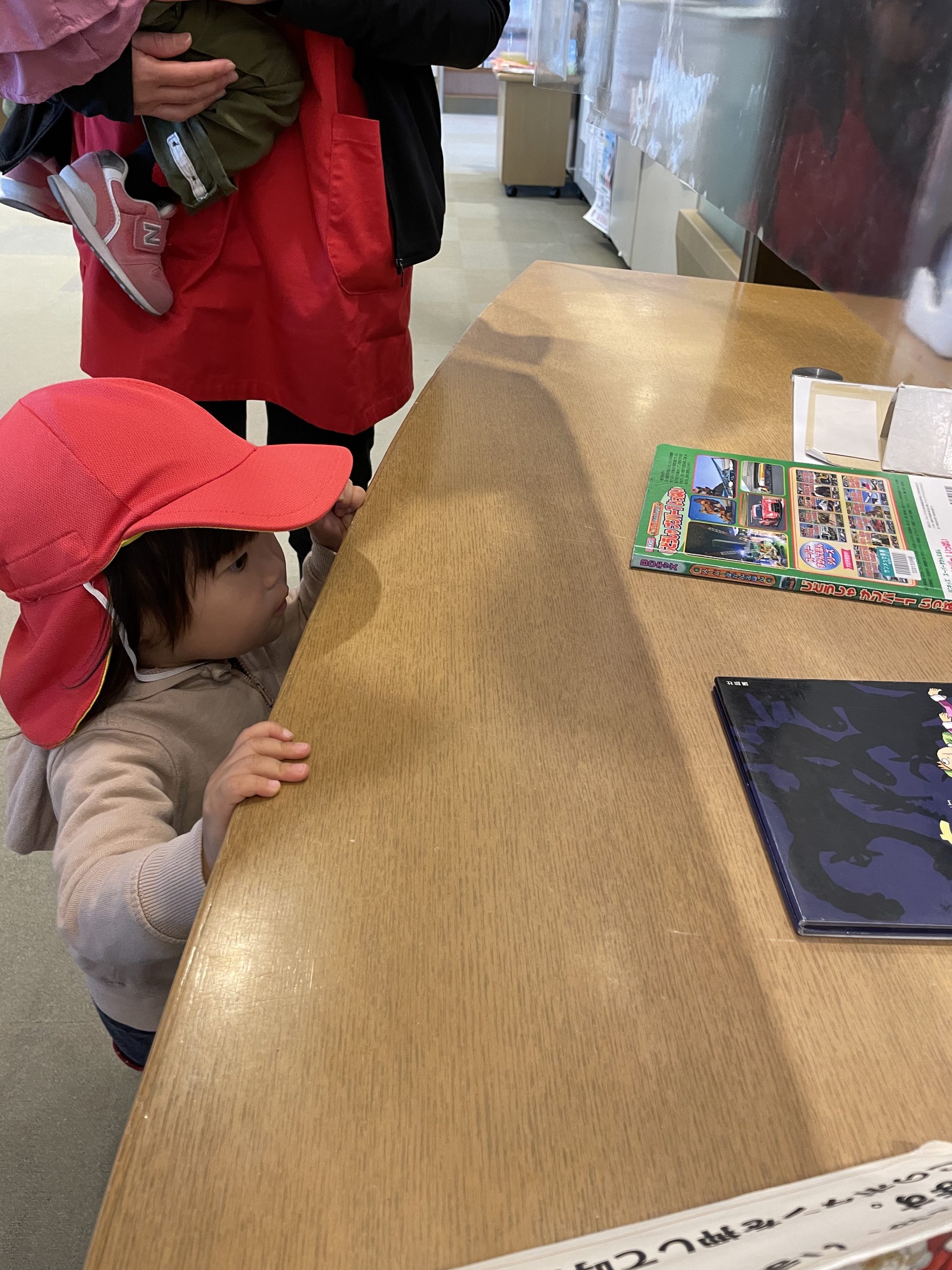 そしてサンメッセまで歩いていき、1、2歳児さんは好きな絵本を選びました!