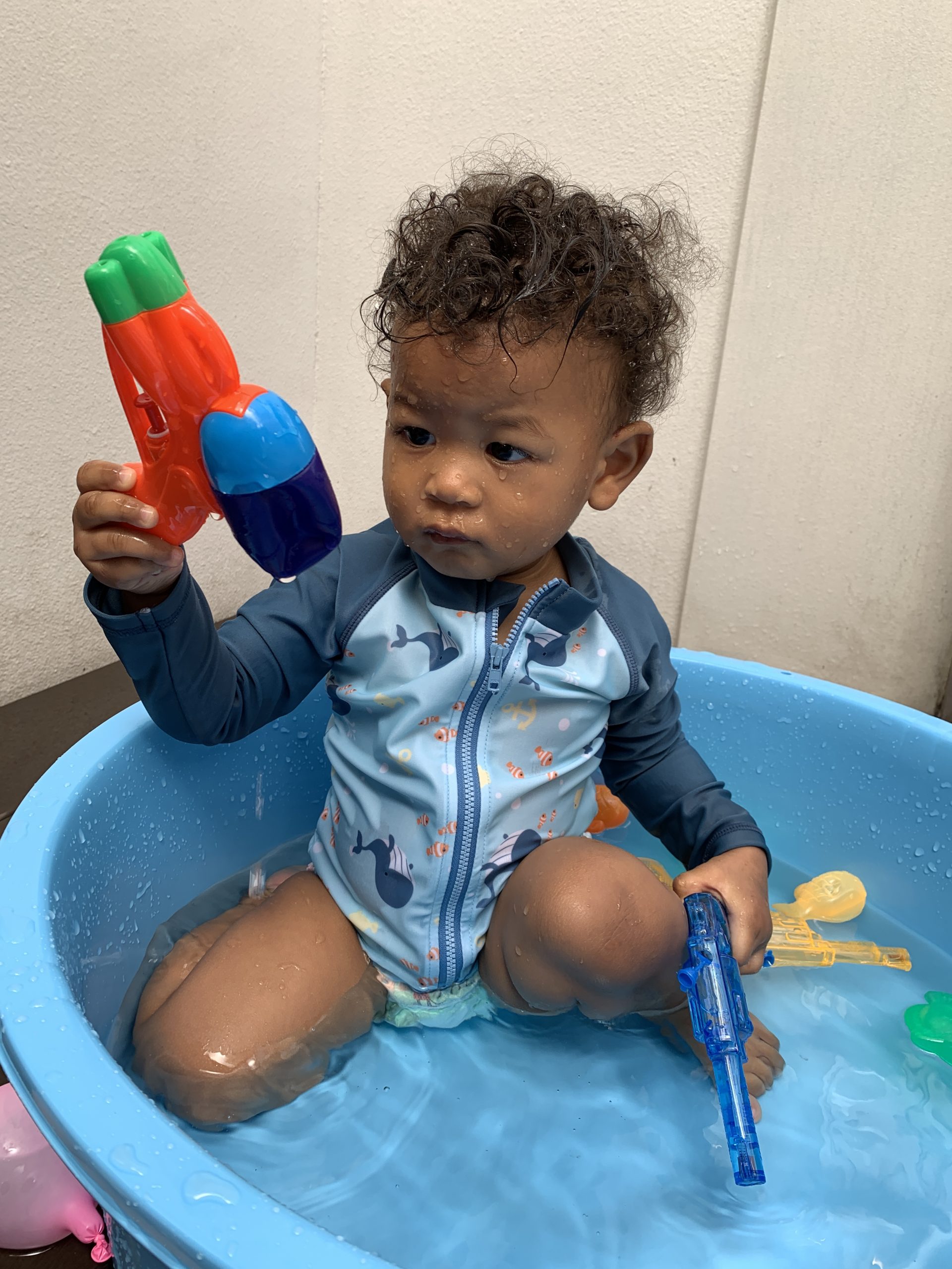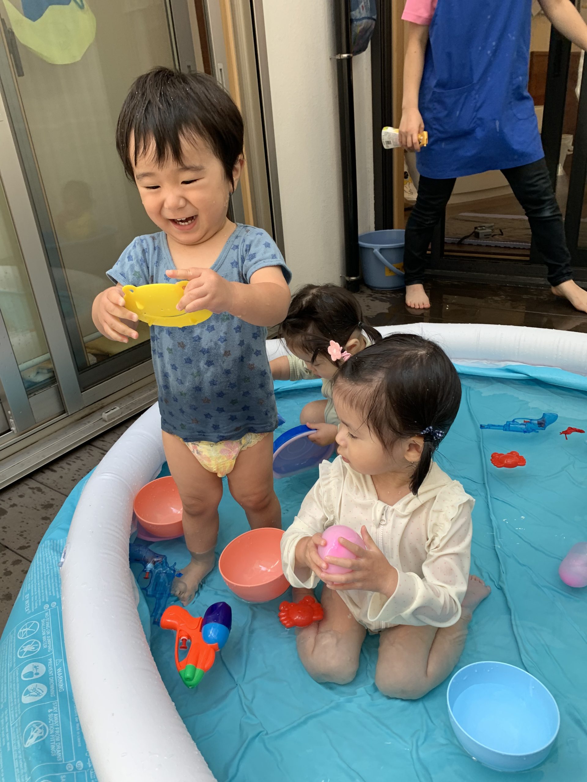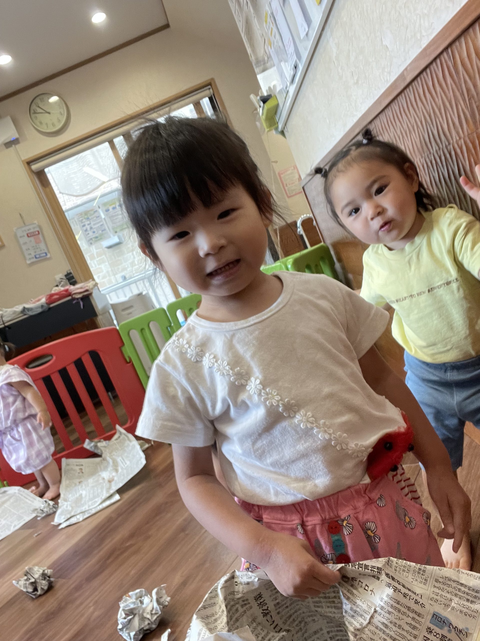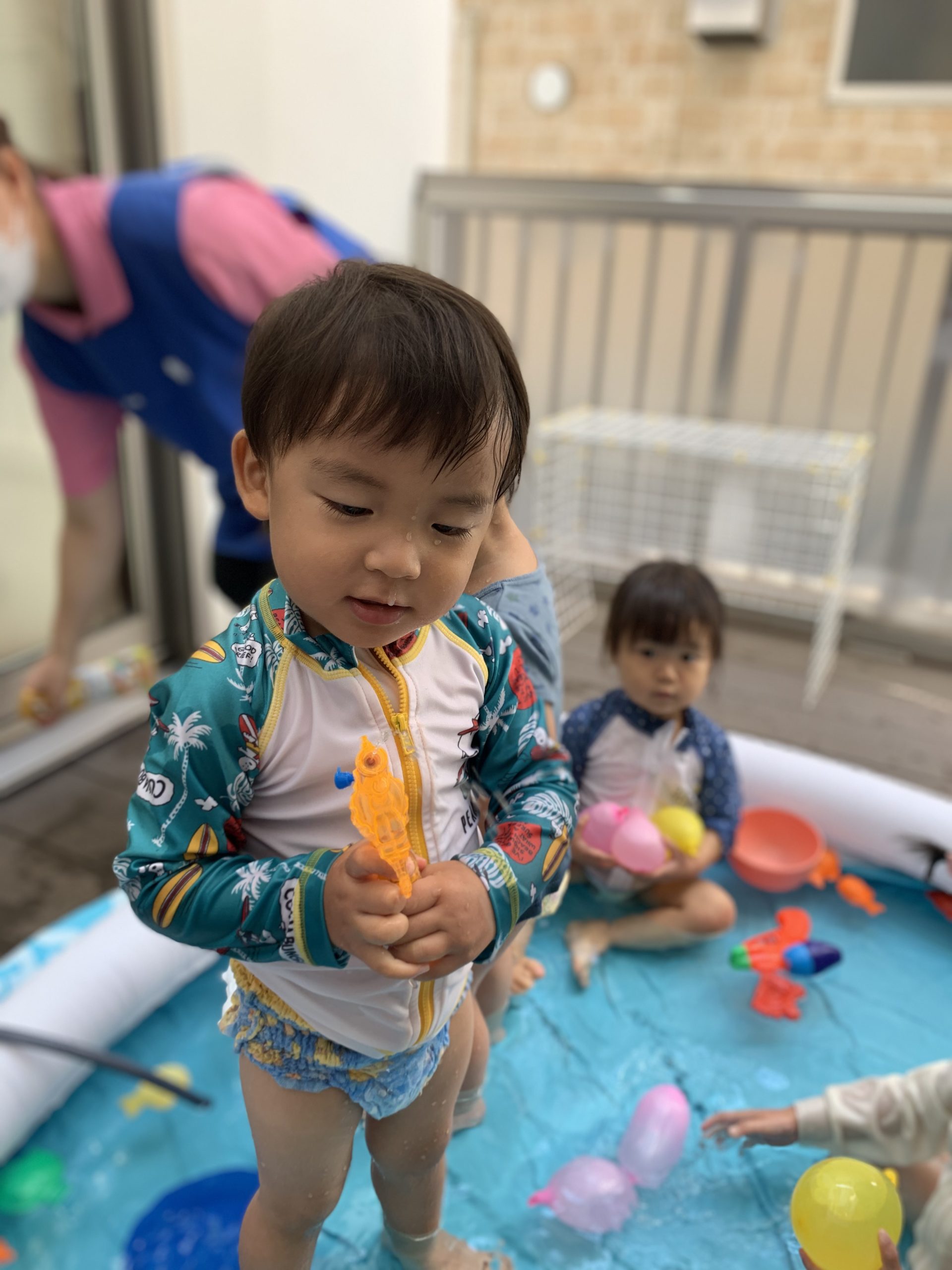 今週の子どもたちは、水遊び・プールで思いっきり遊んだり、新聞遊びや寒天遊び、お絵描きをしたりして、いろんなモノに触れて遊んでいます🥰✨