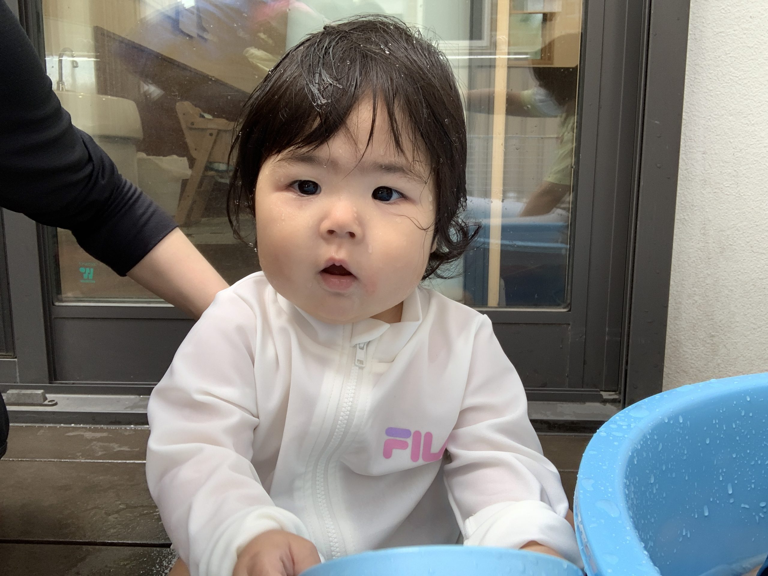山笠が園の前を通った時はお昼寝中だったので、起きている子は少し外に出て、水をかけたり、じっくり見ています🤗
