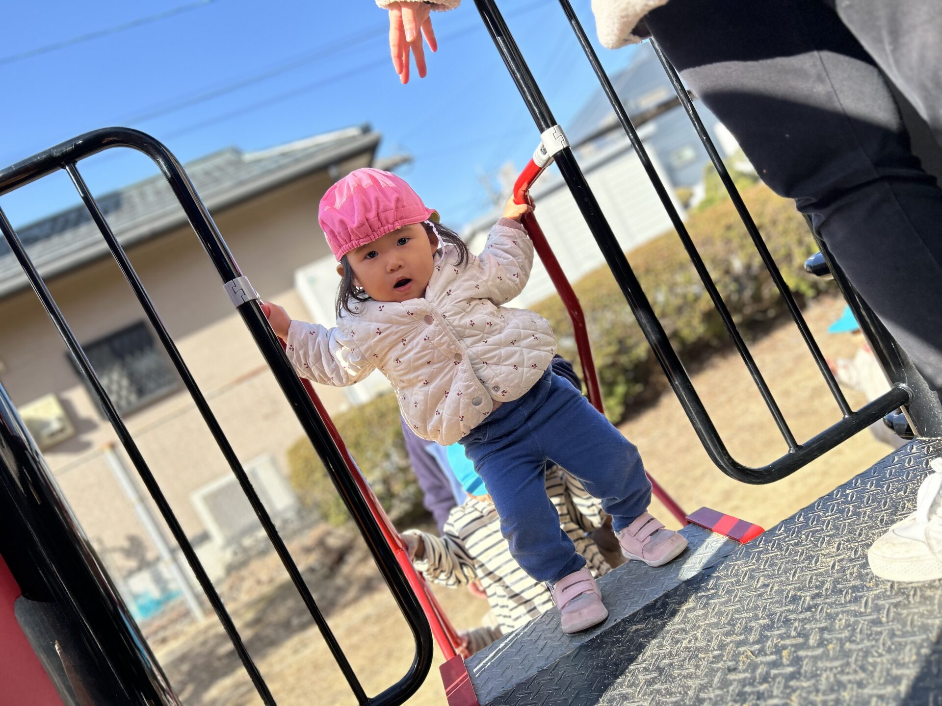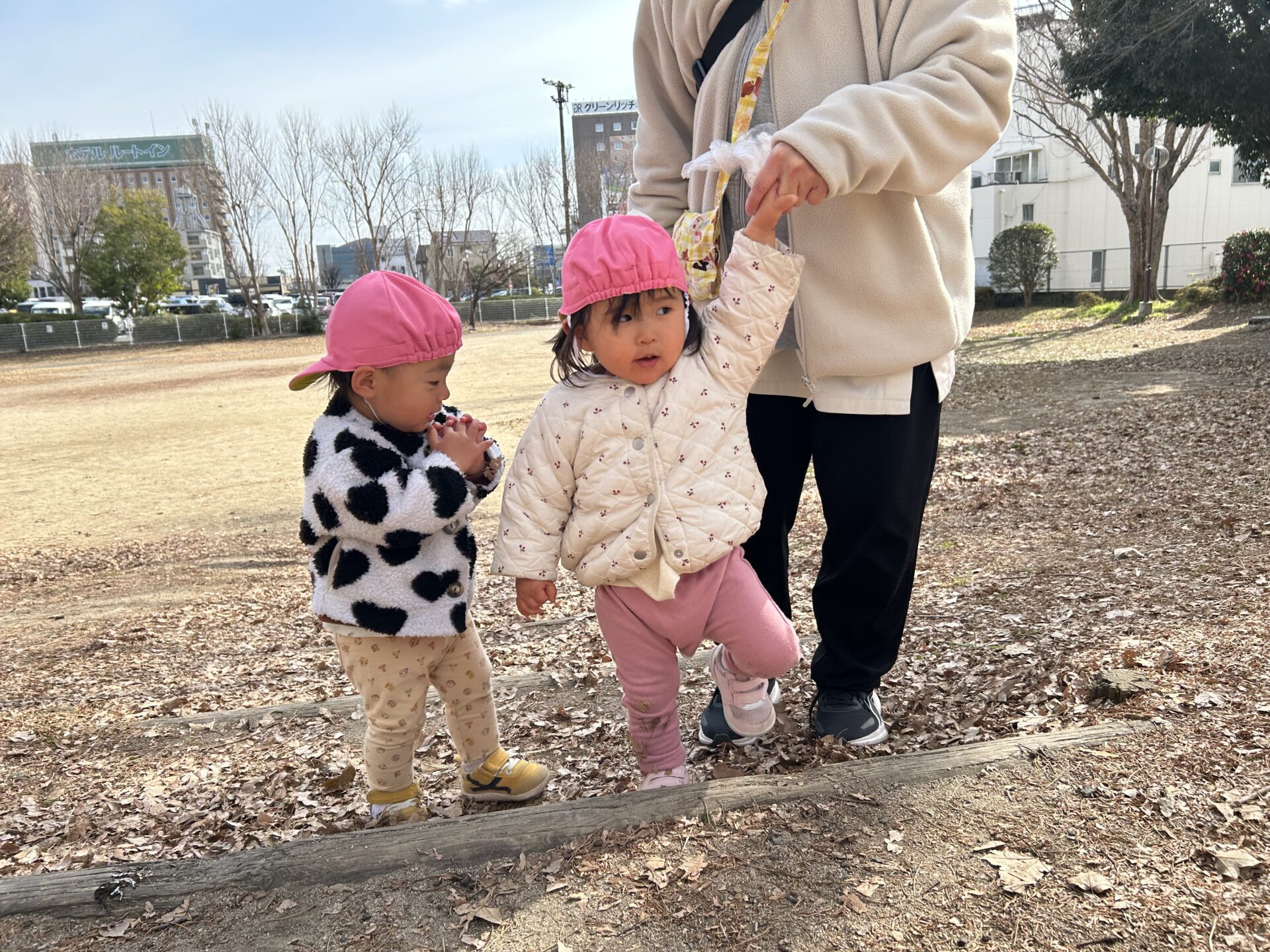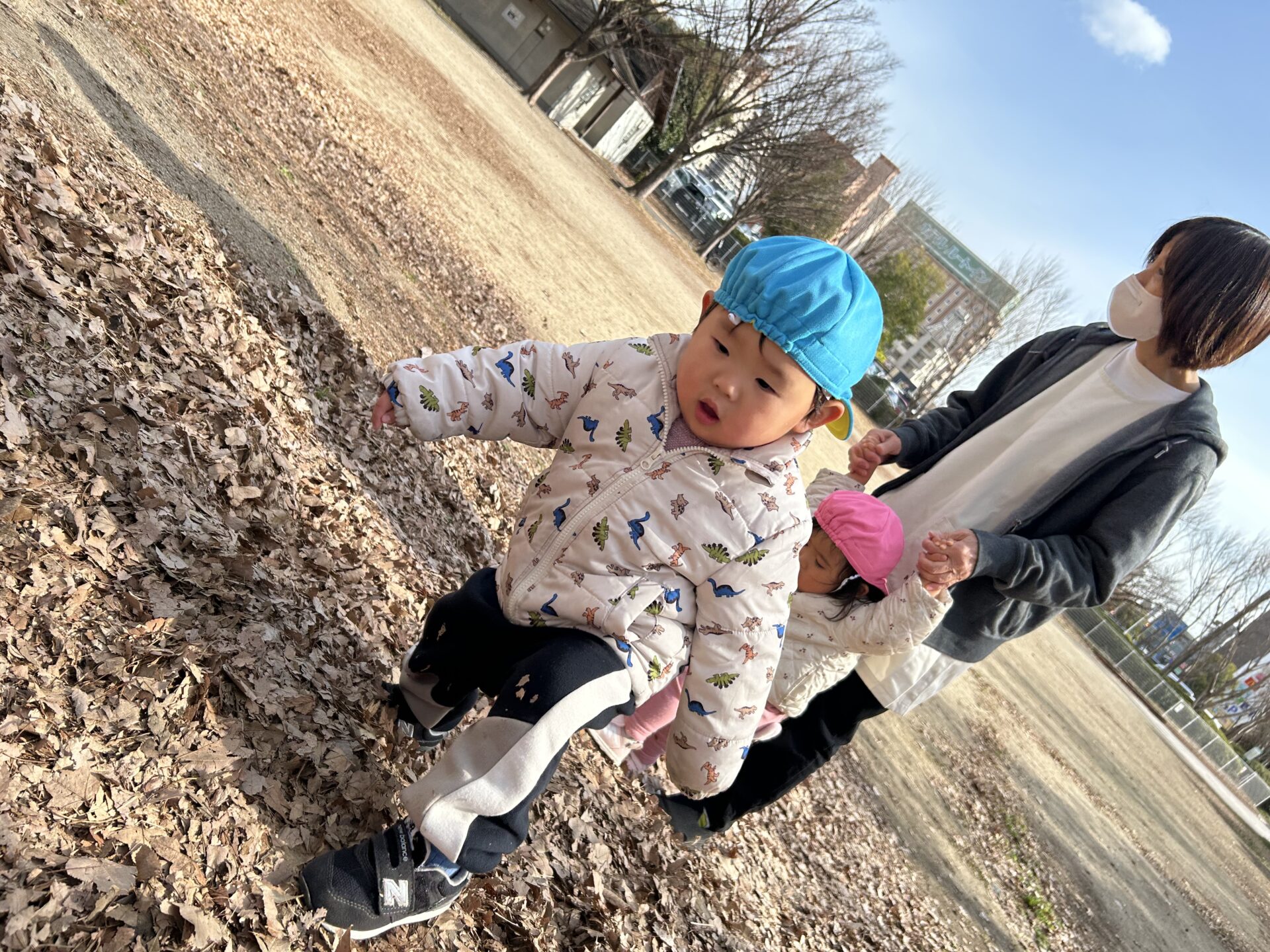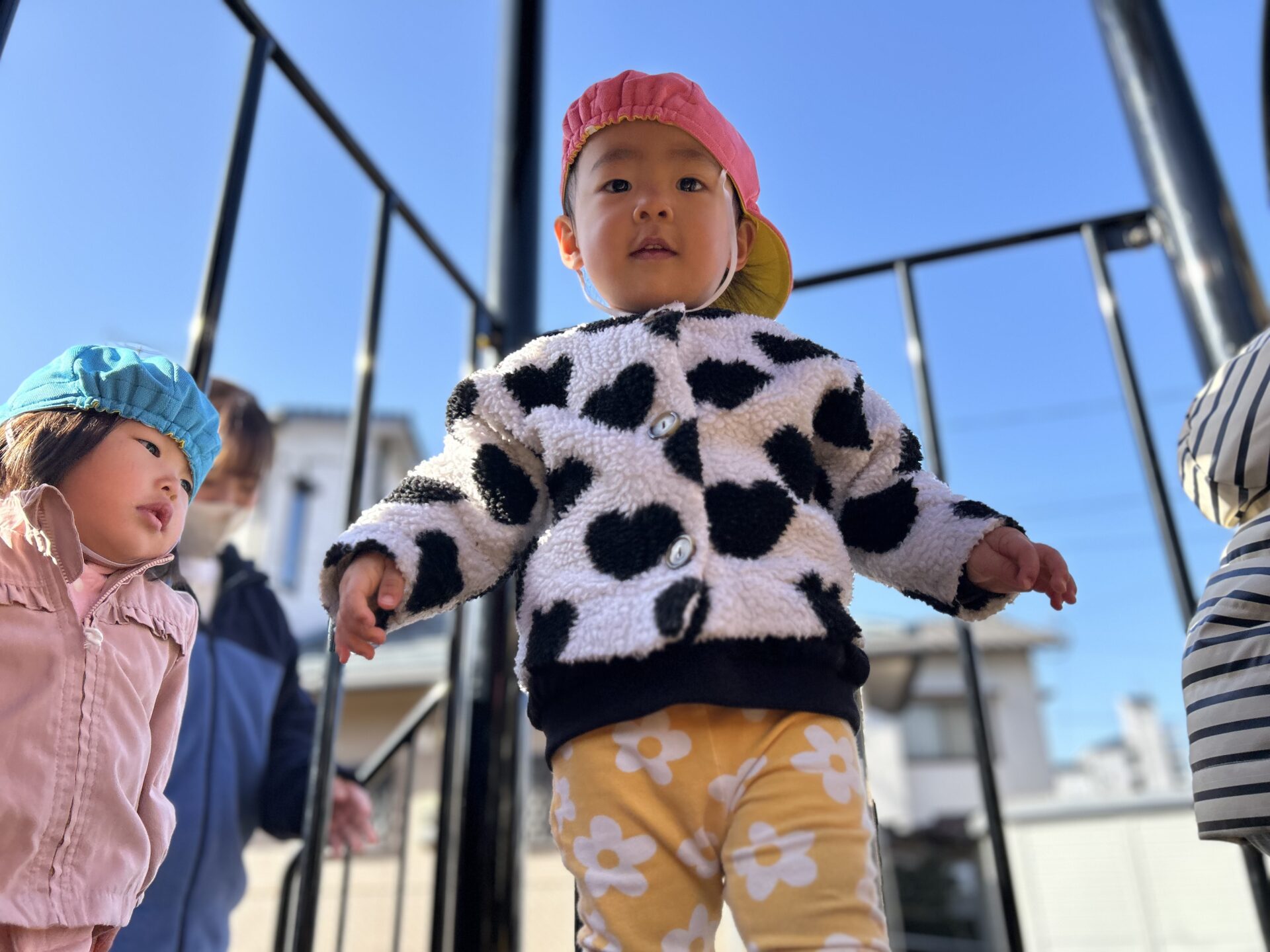 風がない日は日差しが暖かく感じられ、元気いっぱい身体を動かして遊んでいます💕中央公園では傾斜を上ったり、下りたり、東町公園や児童センターでは大型遊具のすべり台を楽しみました🛝
