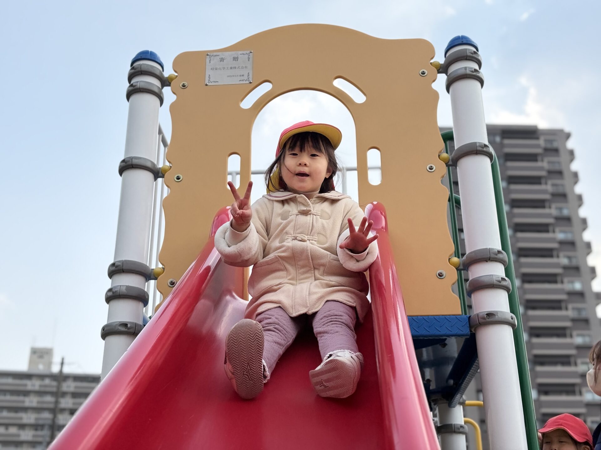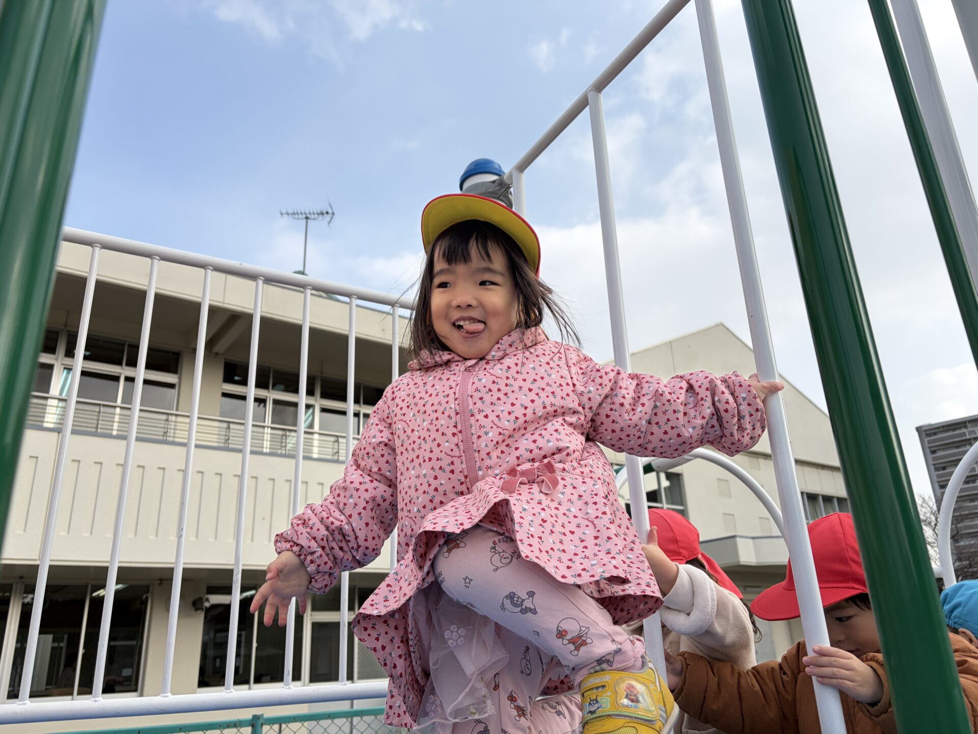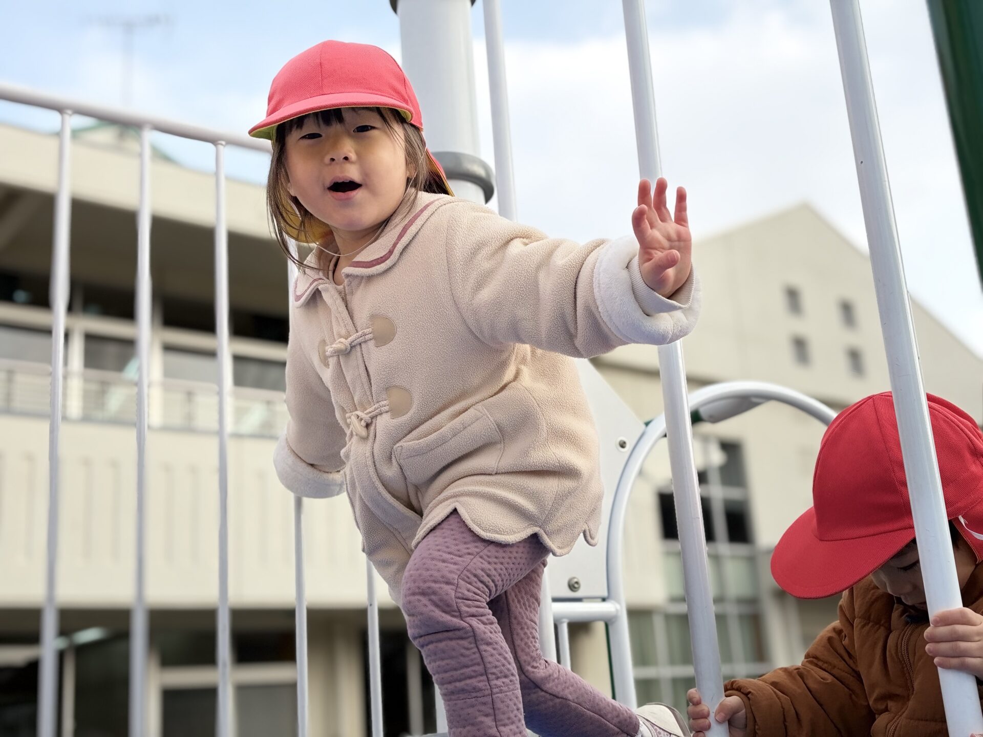 風がない日は日差しが暖かく感じられ、元気いっぱい身体を動かして遊んでいます💕中央公園では傾斜を上ったり、下りたり、東町公園や児童センターでは大型遊具のすべり台を楽しみました🛝