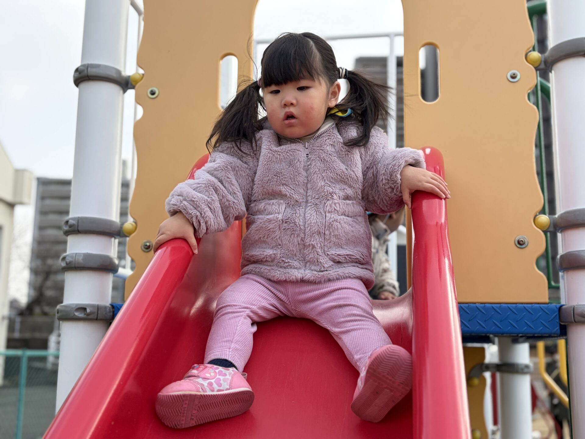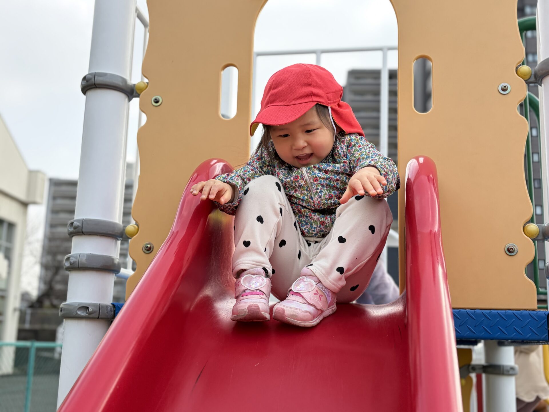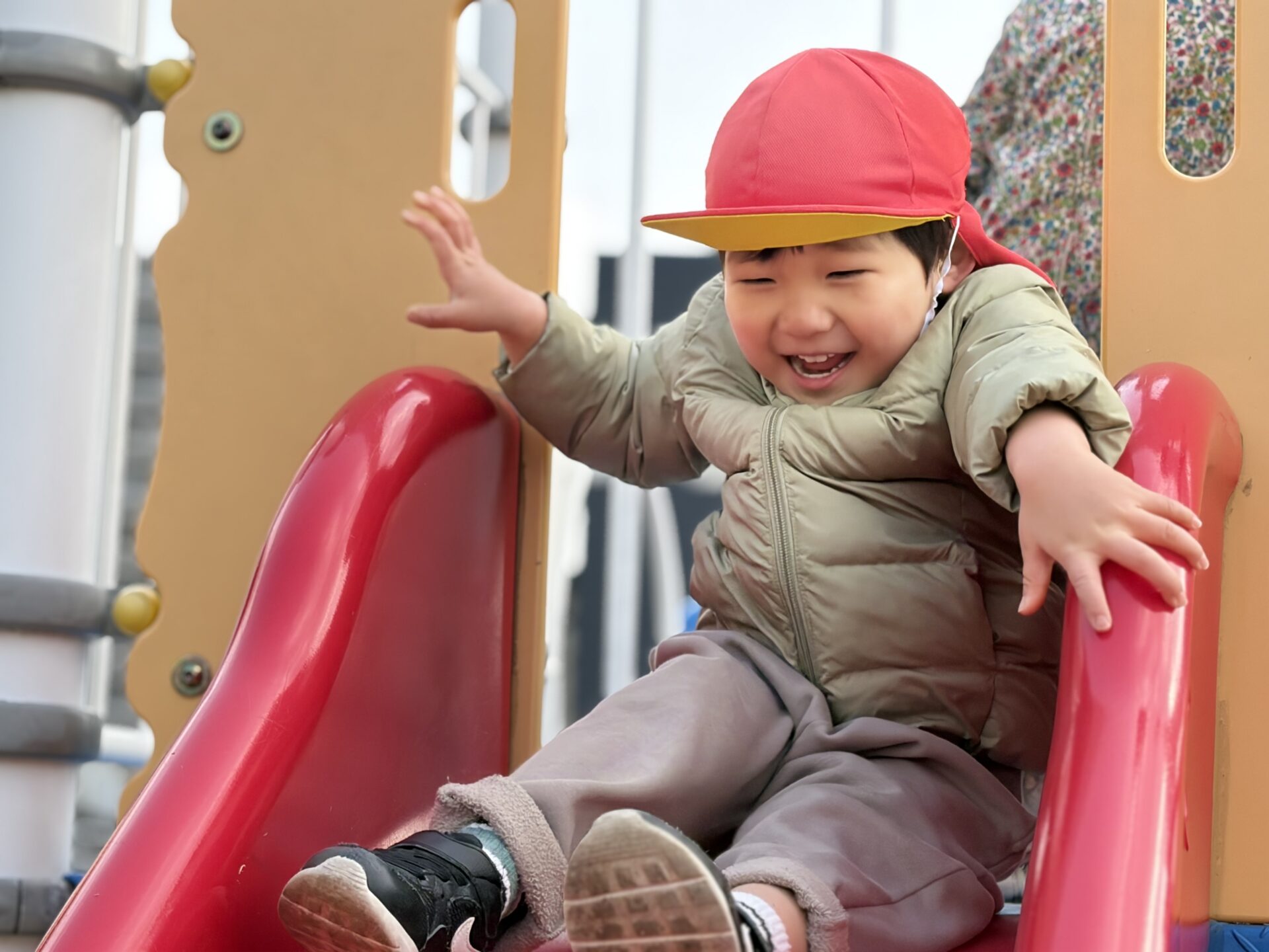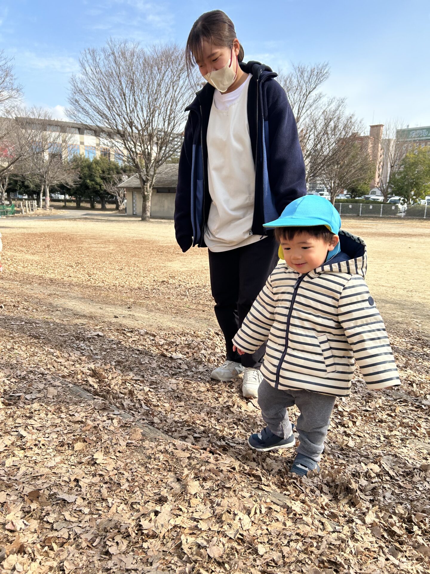 風がない日は日差しが暖かく感じられ、元気いっぱい身体を動かして遊んでいます💕中央公園では傾斜を上ったり、下りたり、東町公園や児童センターでは大型遊具のすべり台を楽しみました🛝