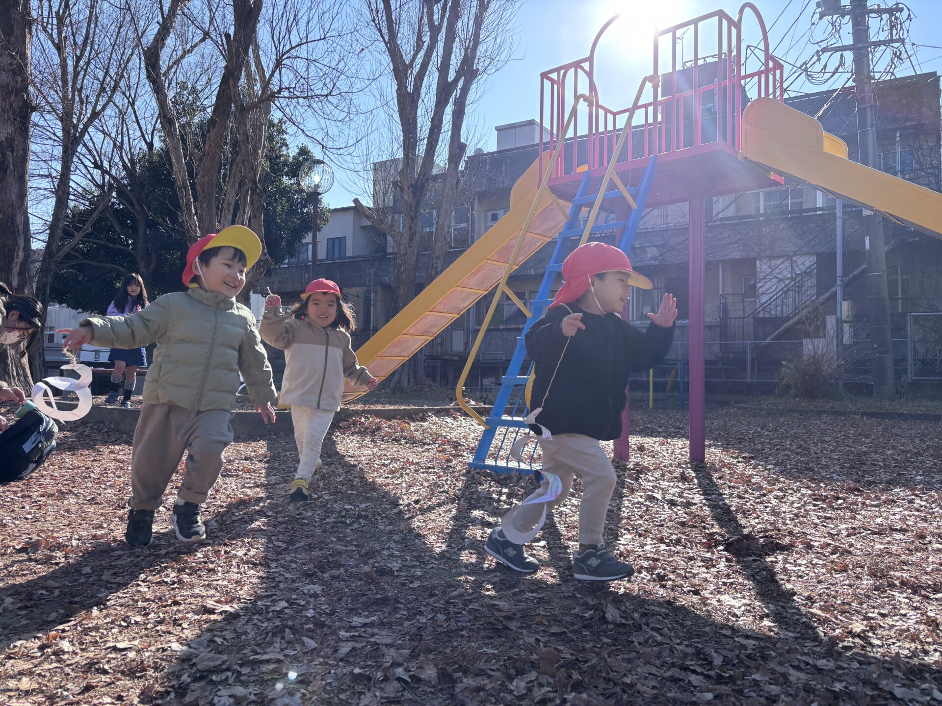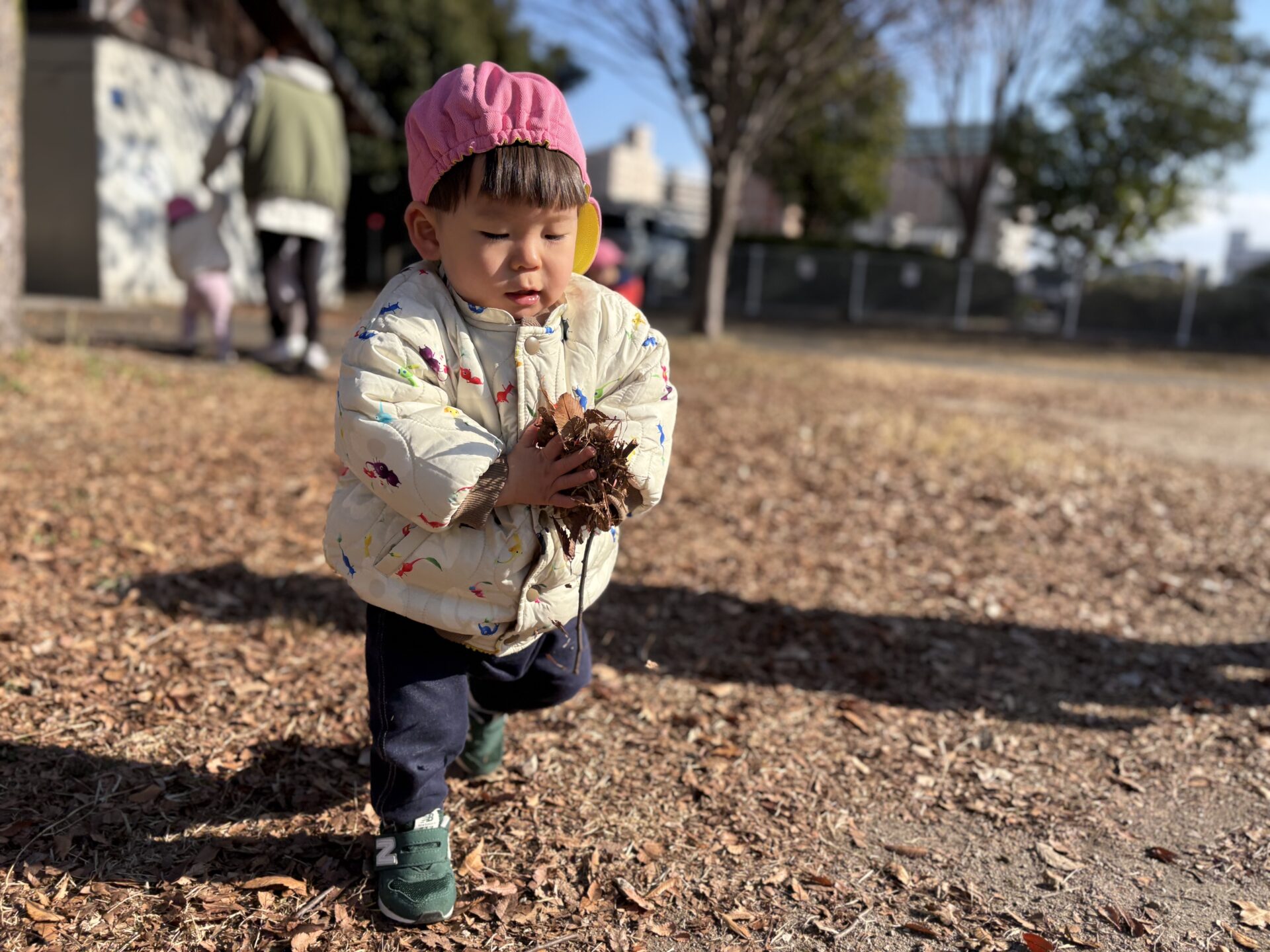 お外遊びでは、公園や広場で木の実探しや遊具で元気に遊んでいます🎶