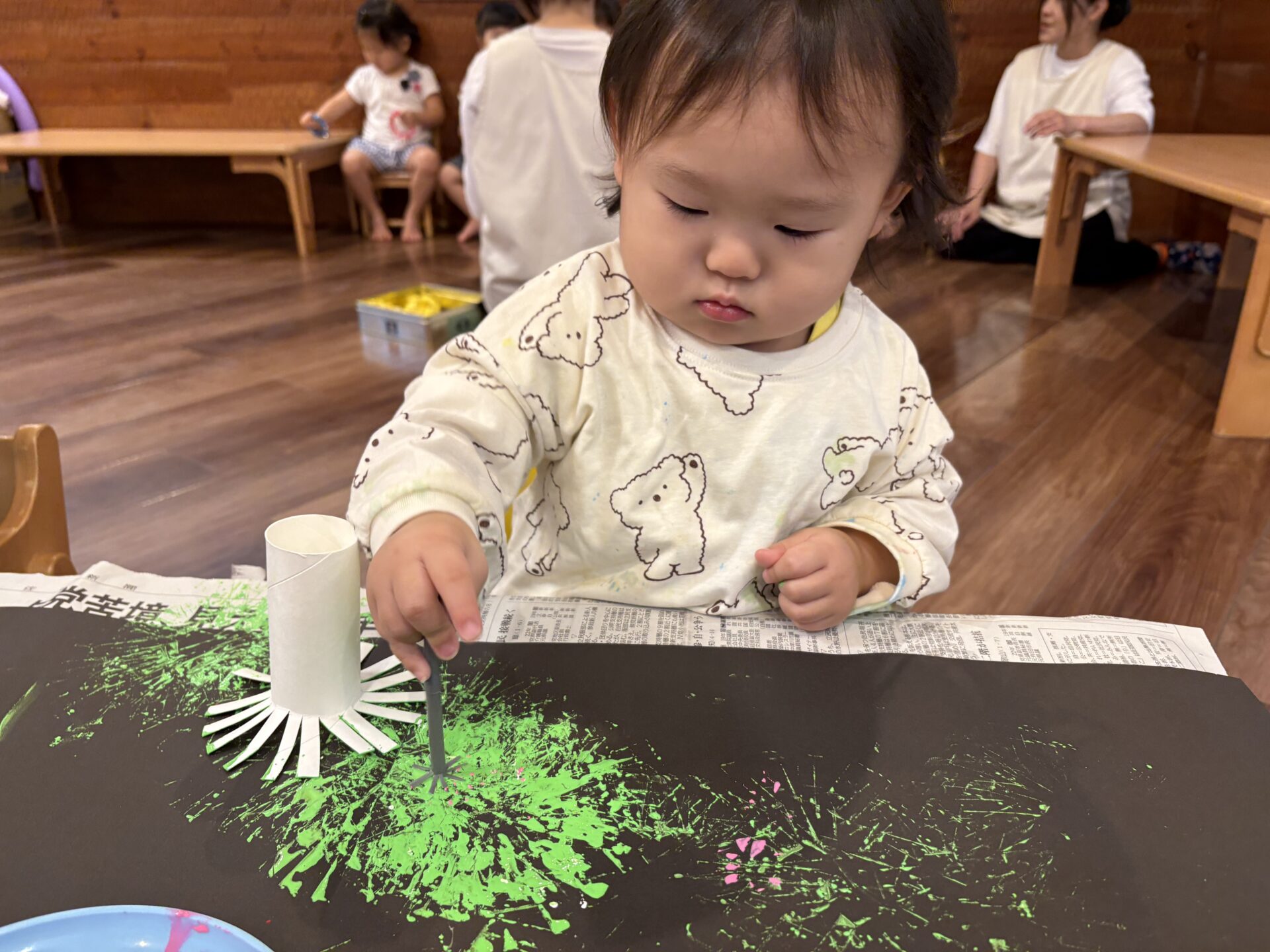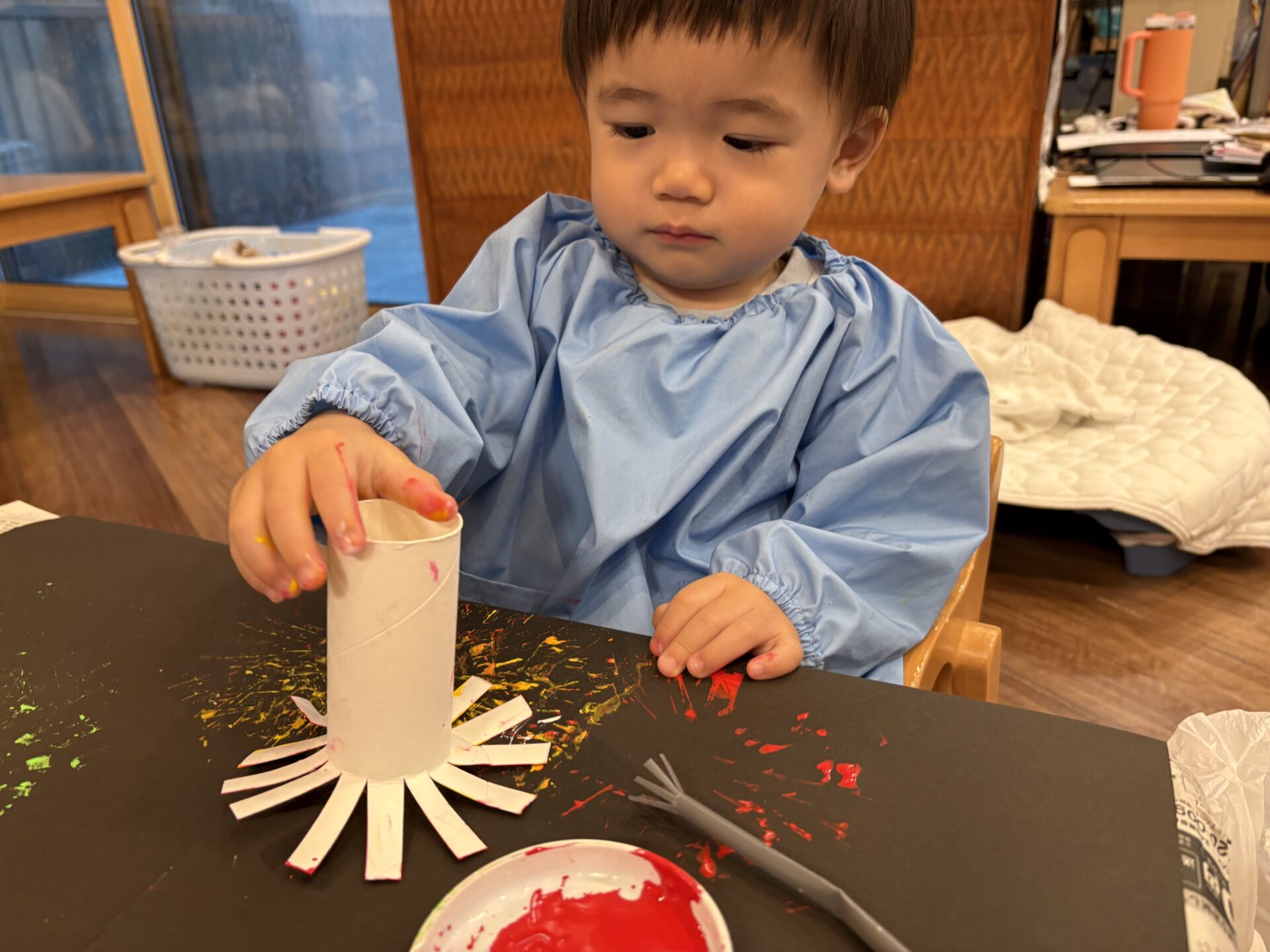 先週のりす組さんは、トイレットペーパーの芯で花火も作っていますよ🎆