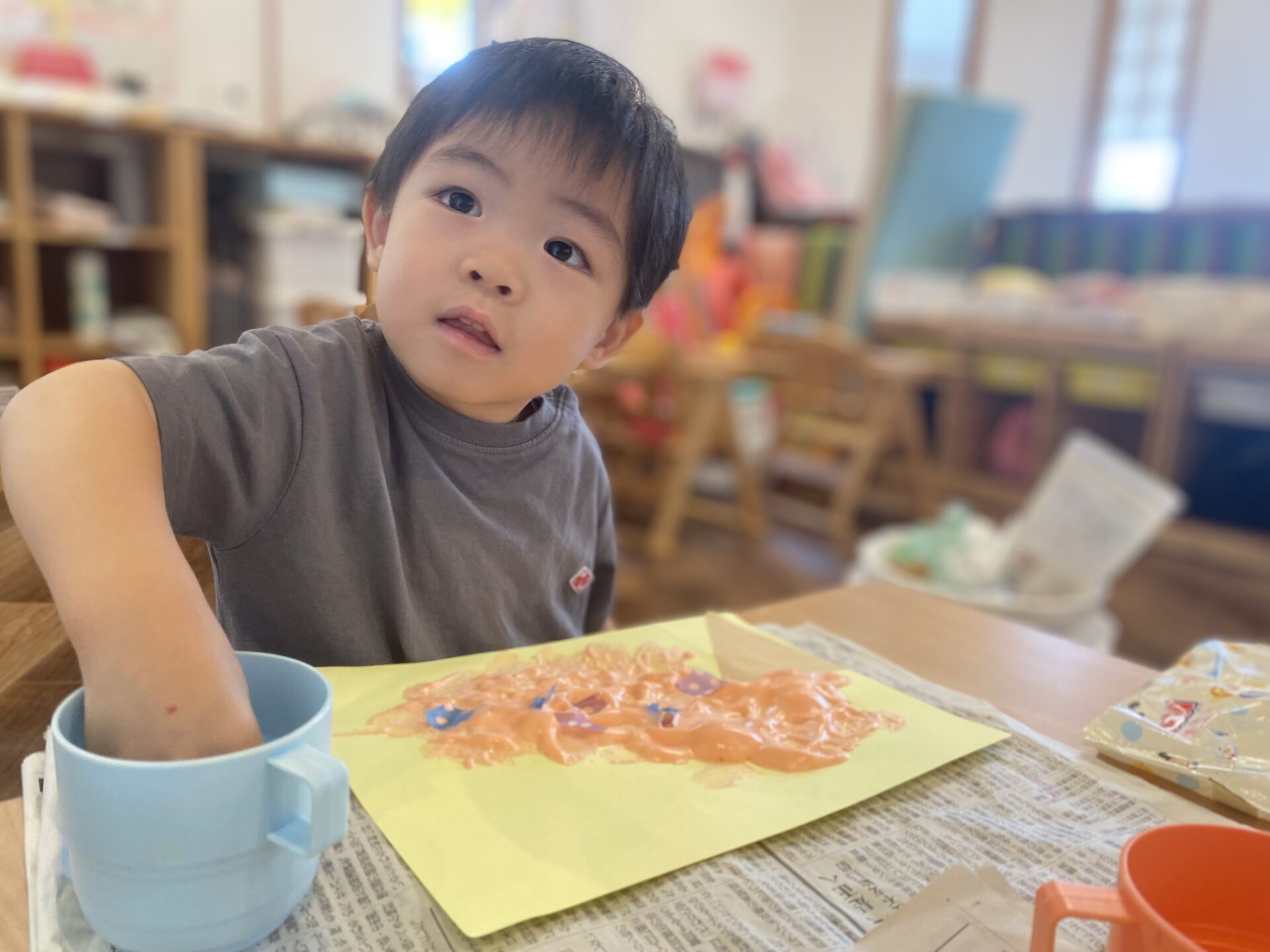 登園の日は、ゆっくりと1日を過ごしながら製作や水遊び、