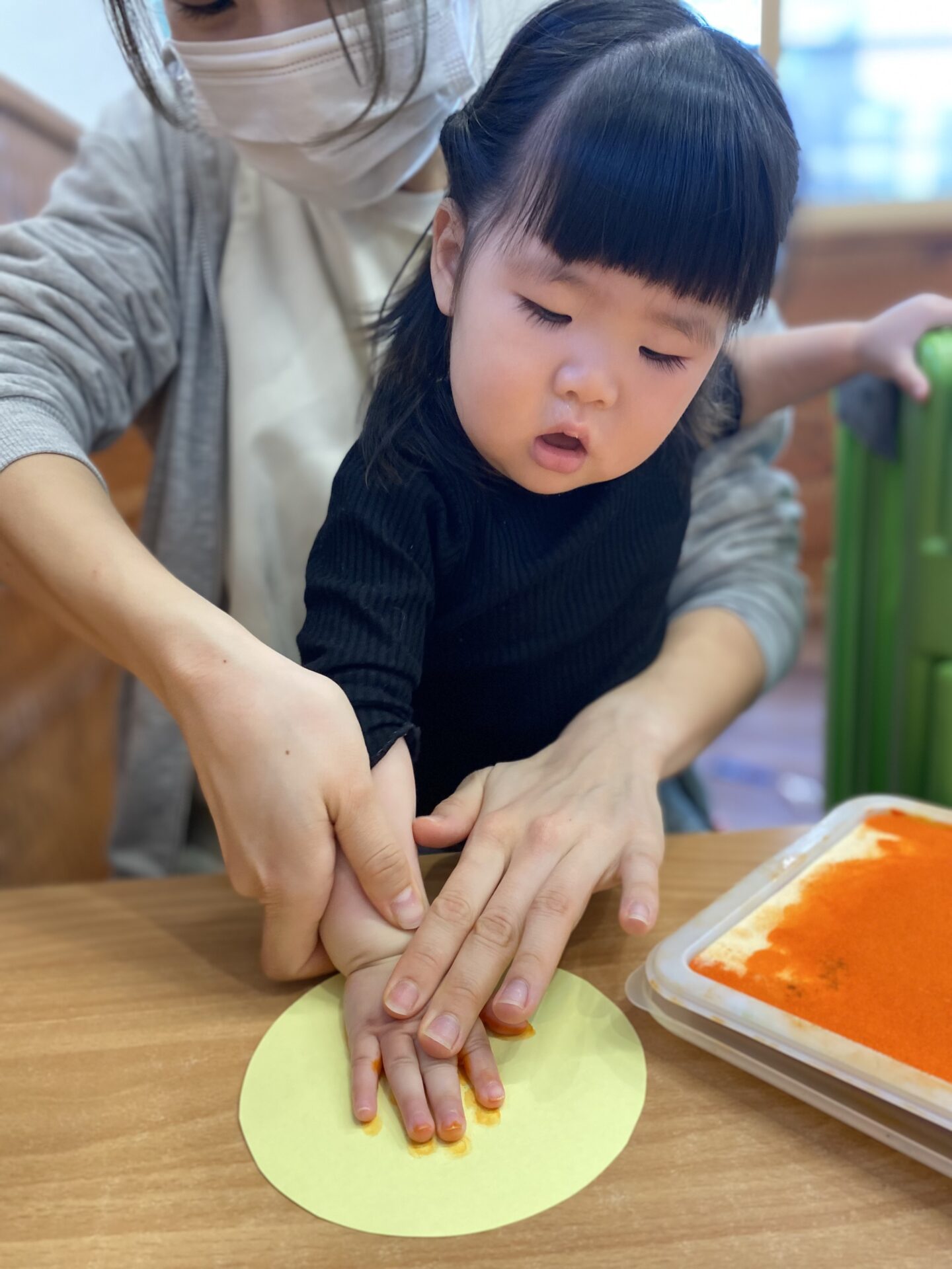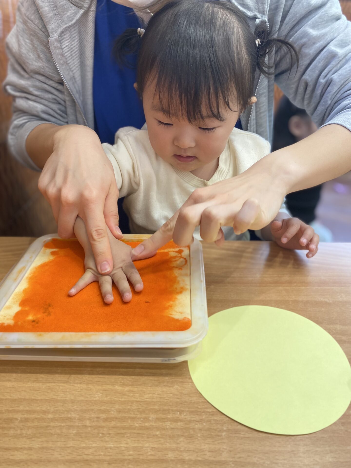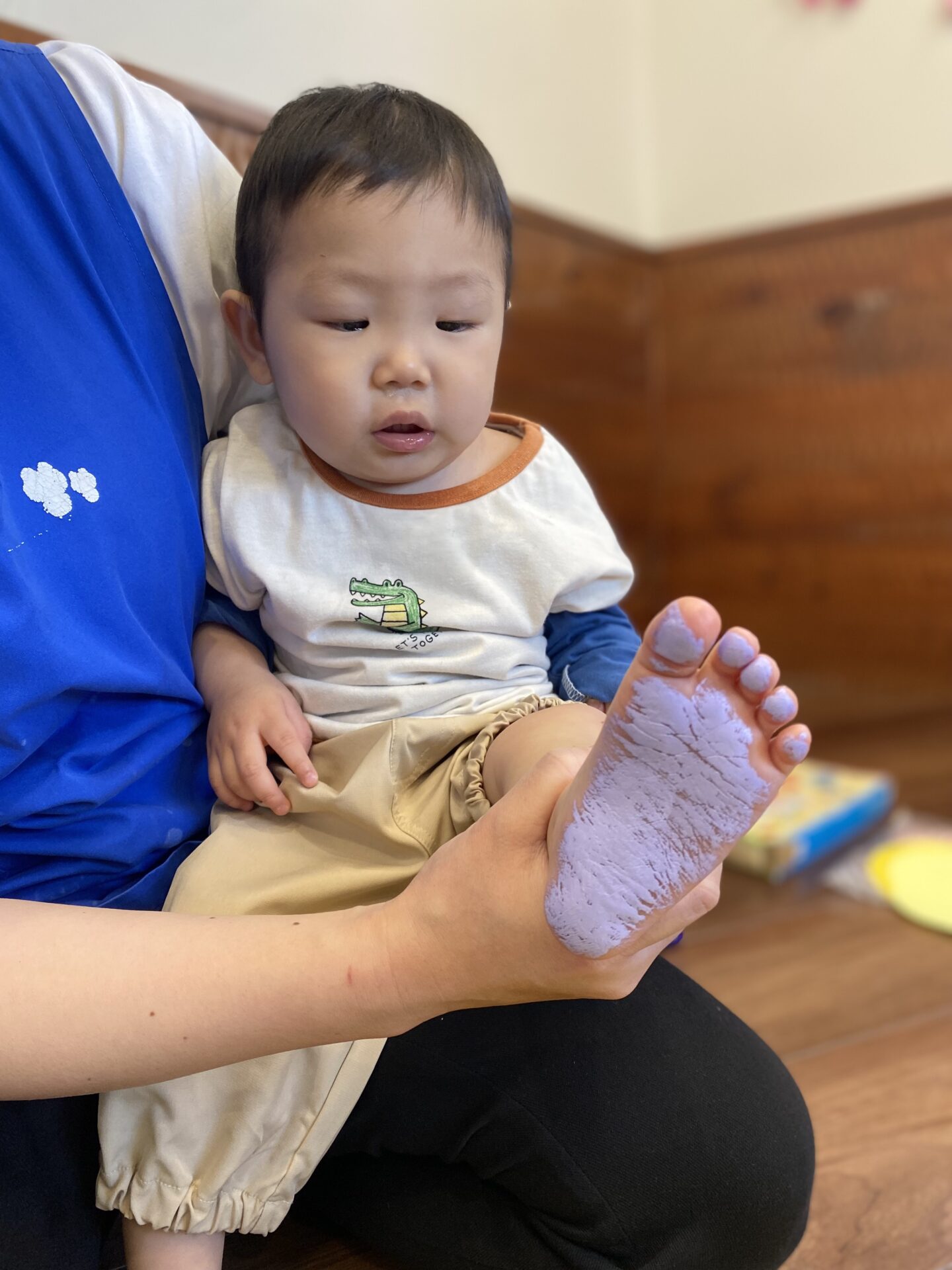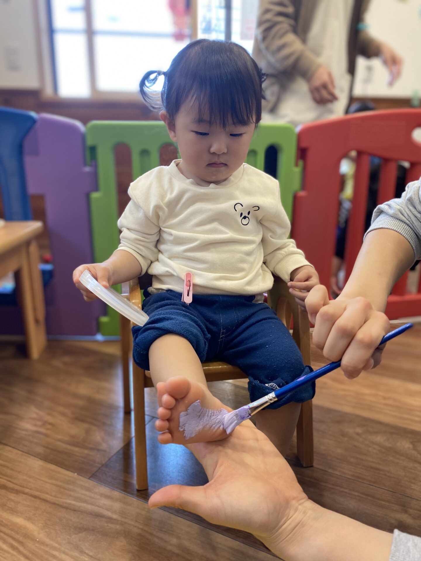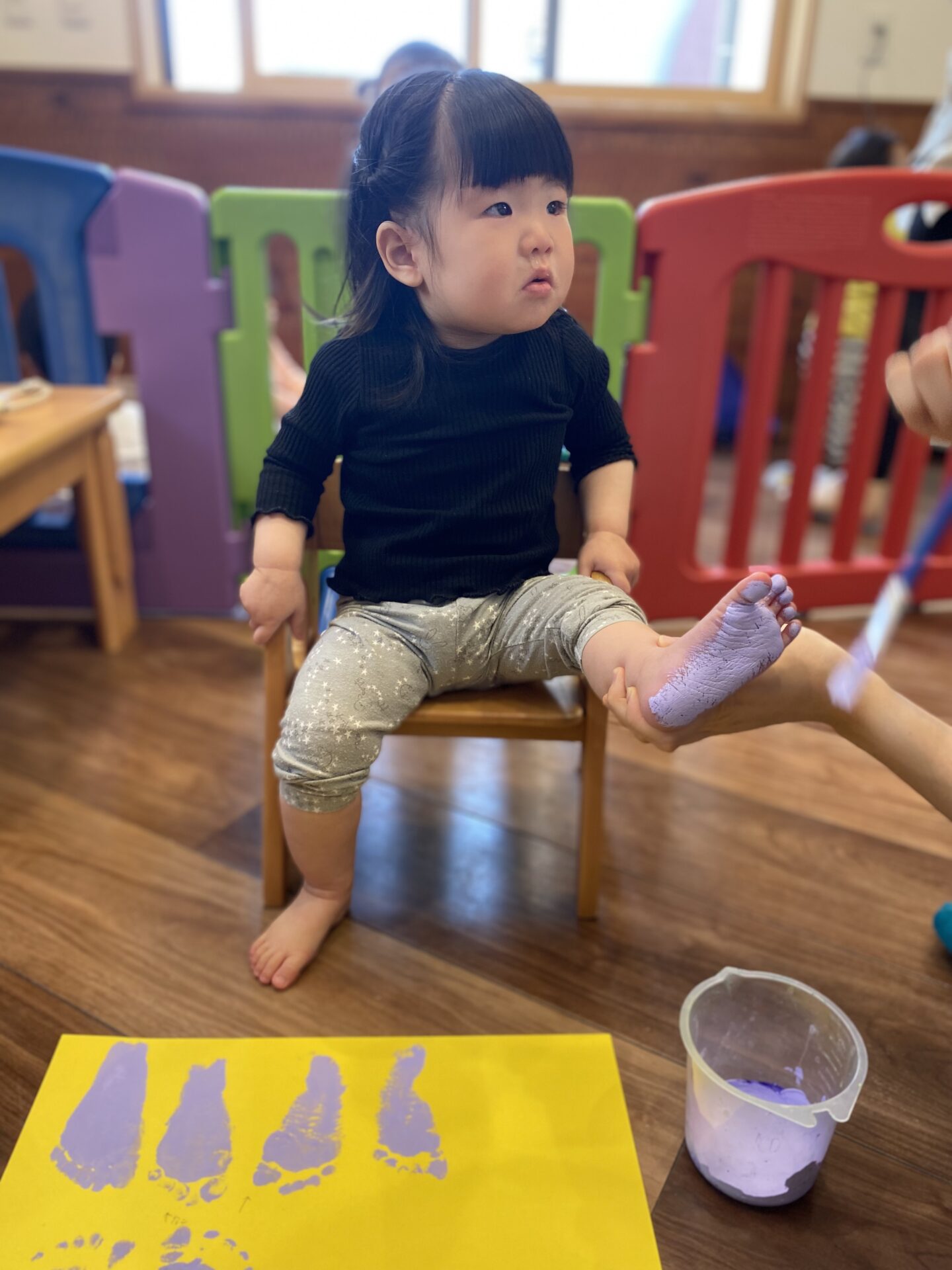 室内では、春の制作で足型や手型を取ったり、お絵描きをしました🖍✨