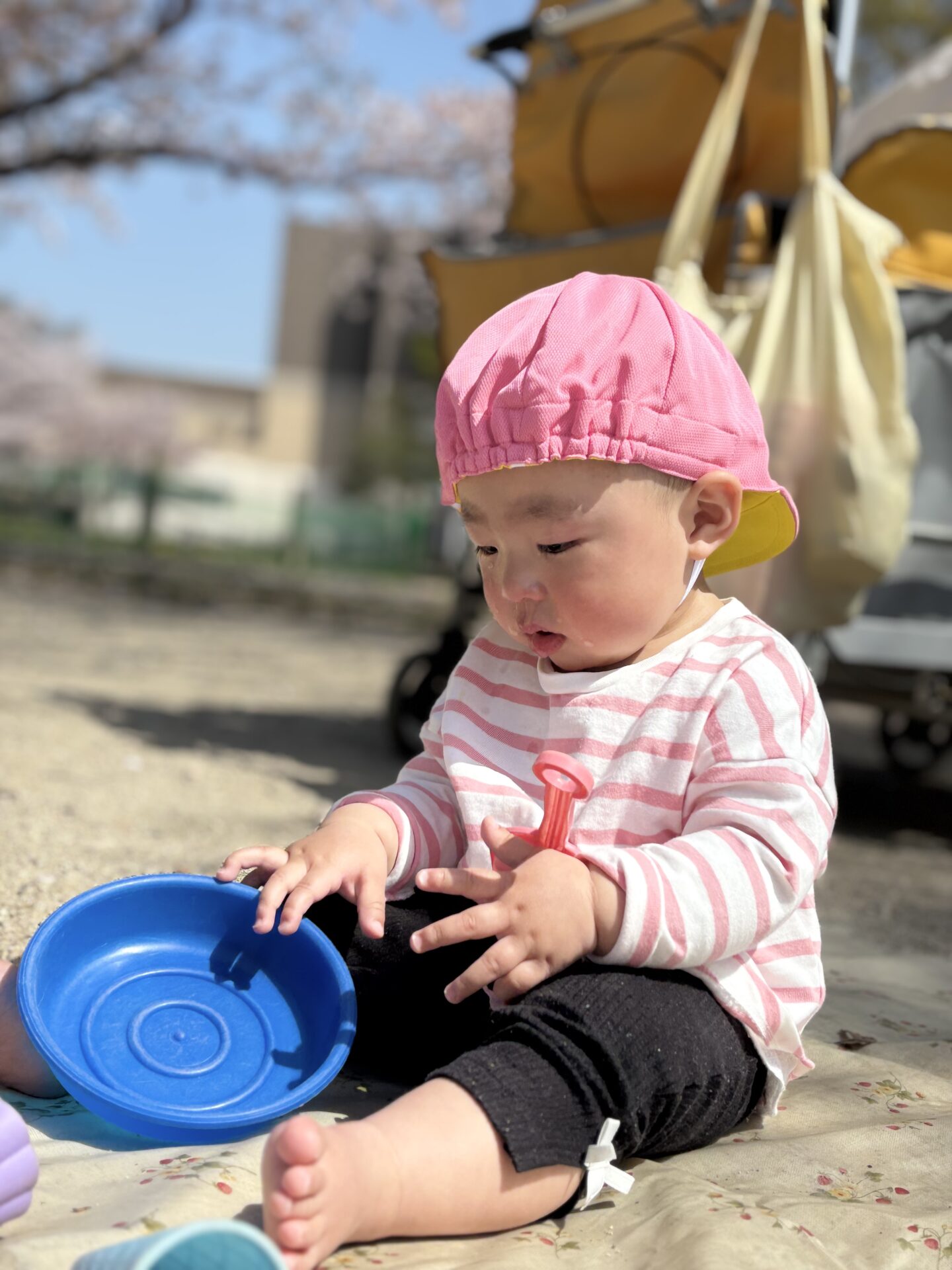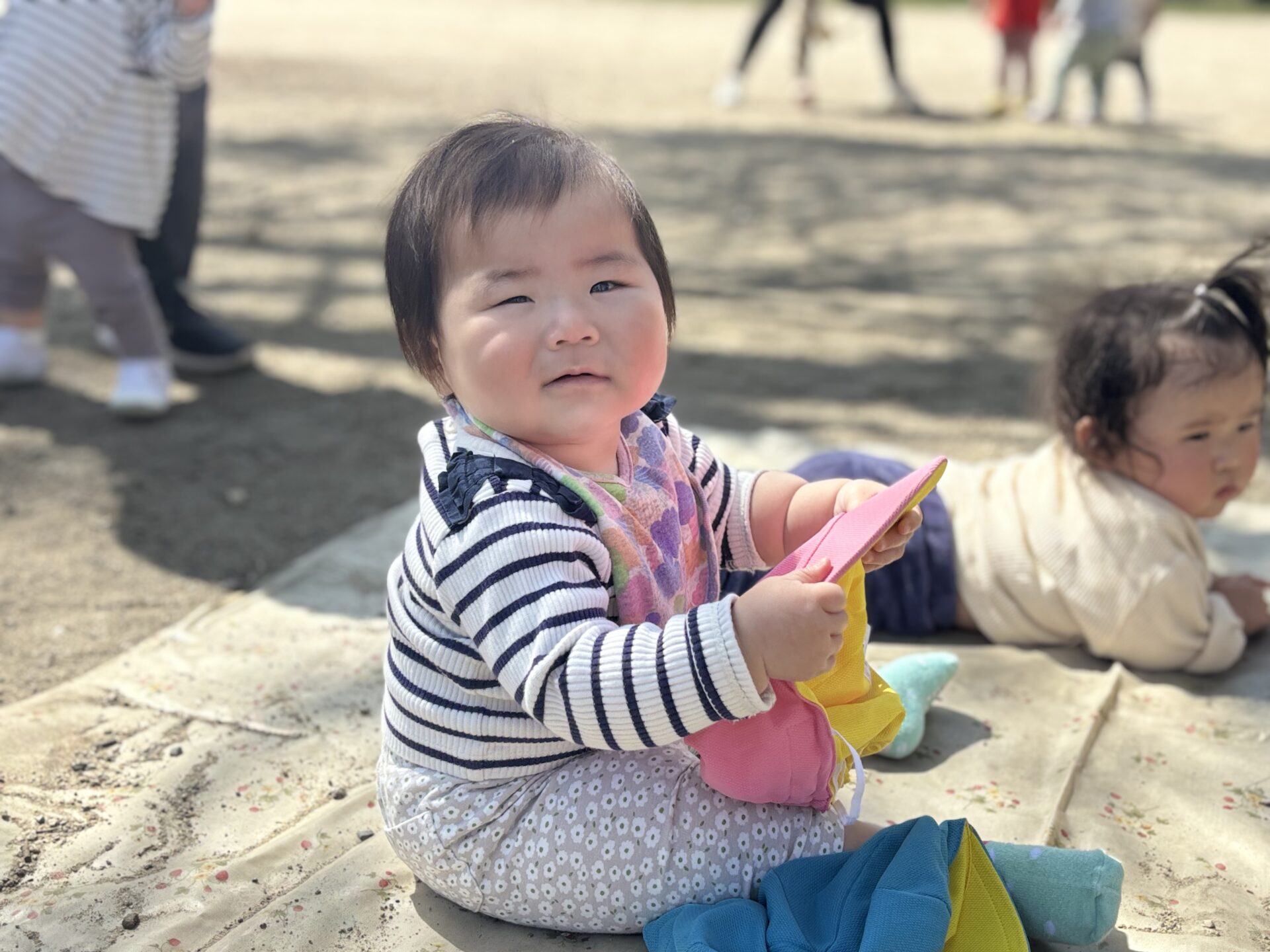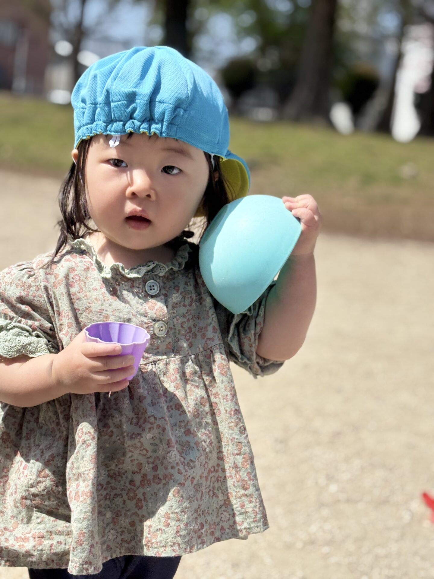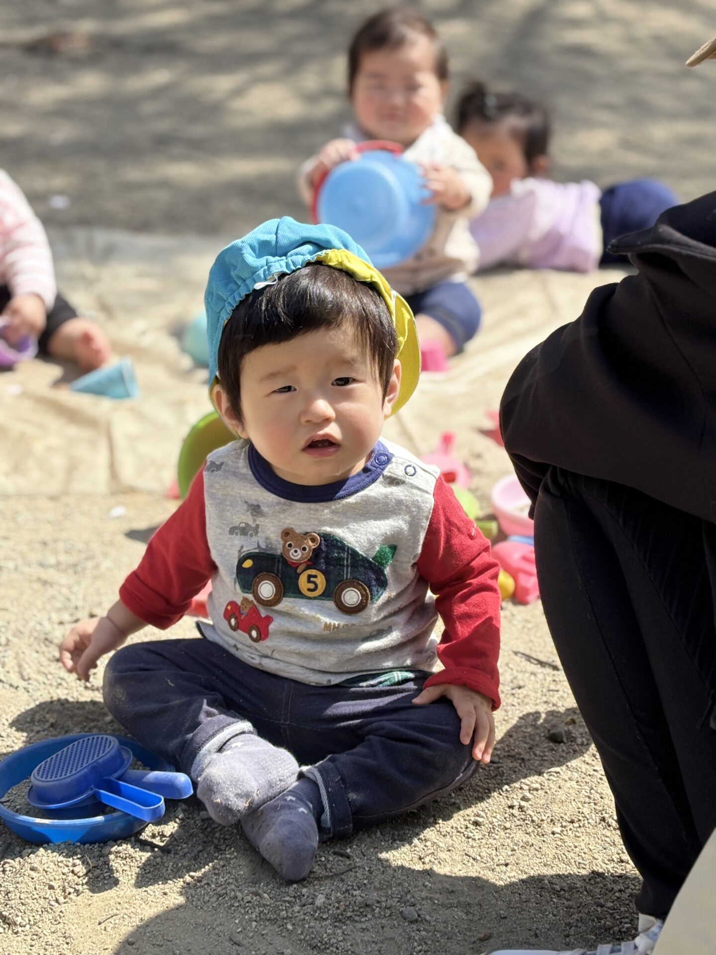 公園では、先生達と追いかけっこをしたり、砂遊びに夢中なったりと、