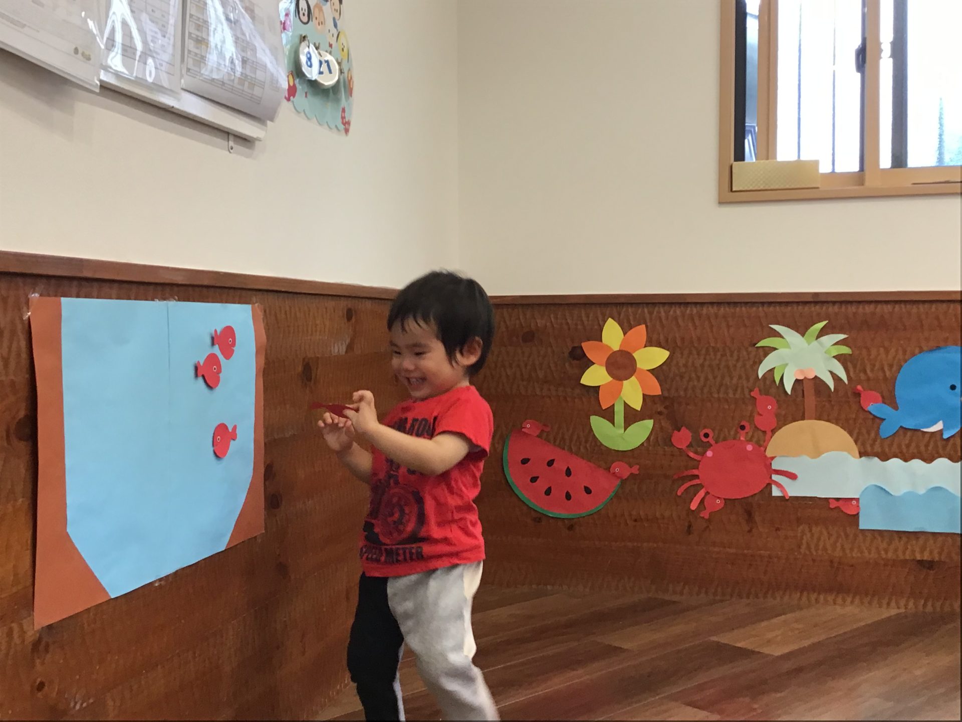 「あった〜!」と嬉しそうです☺️みんなで逃げた金魚を