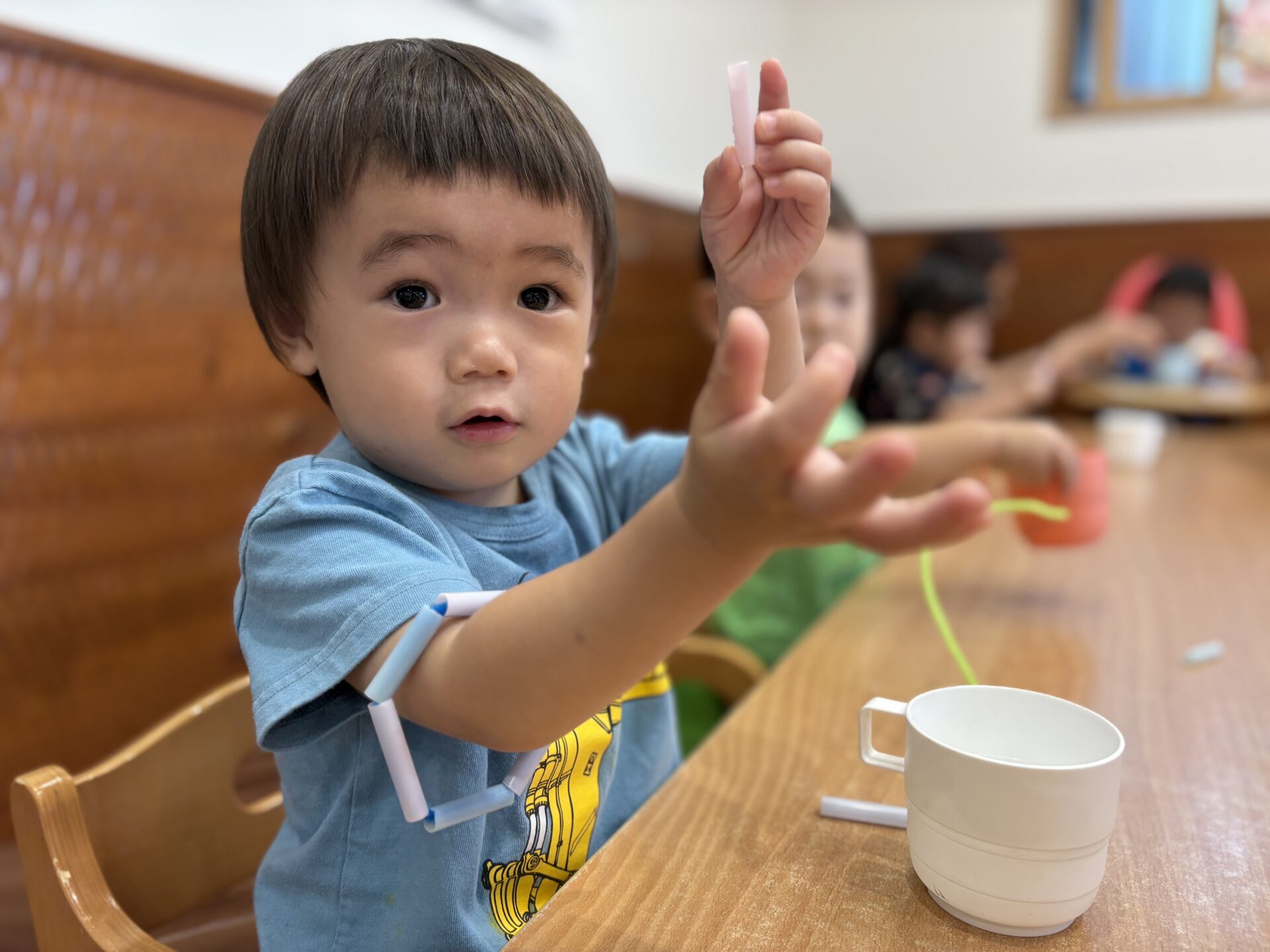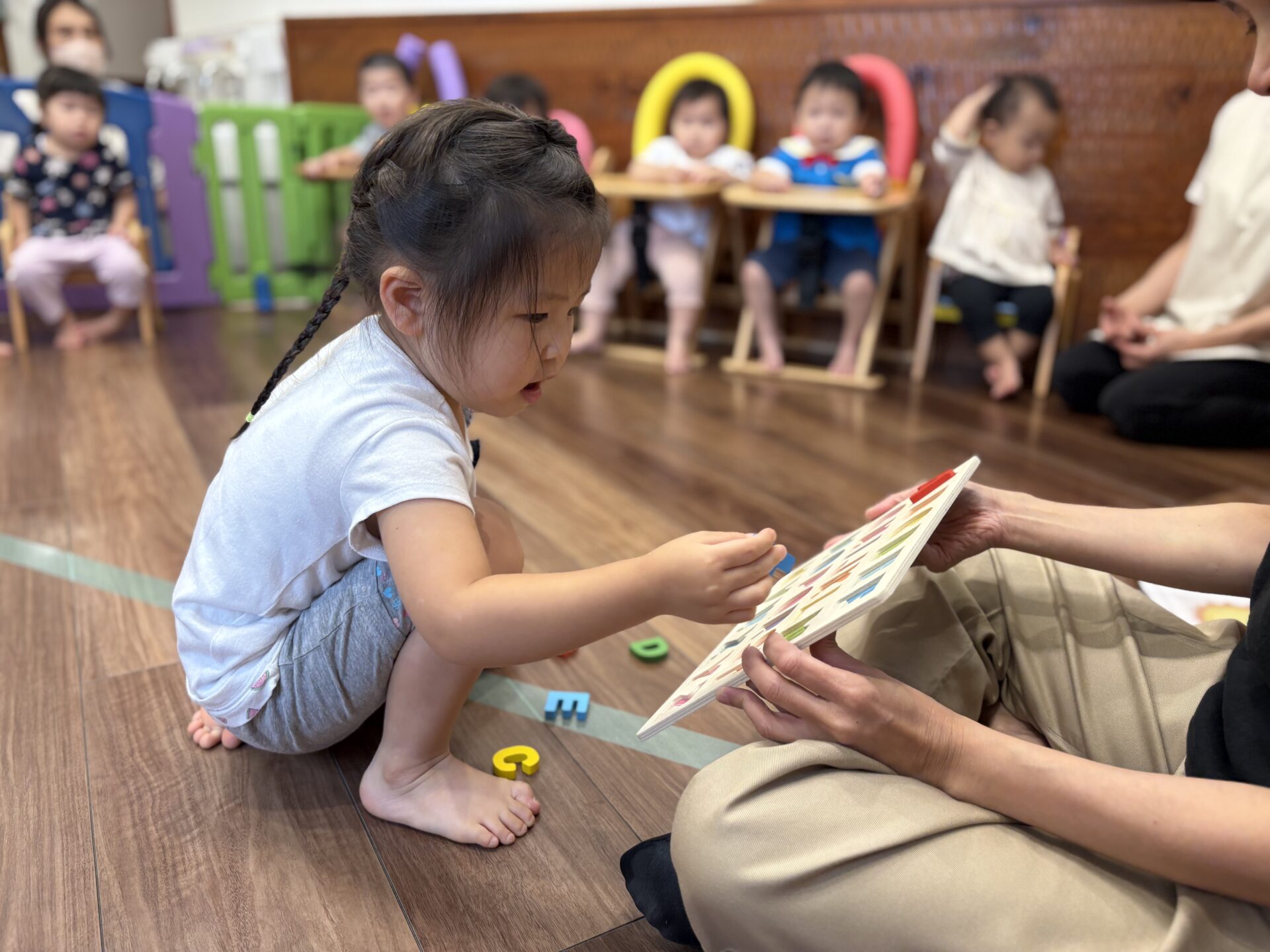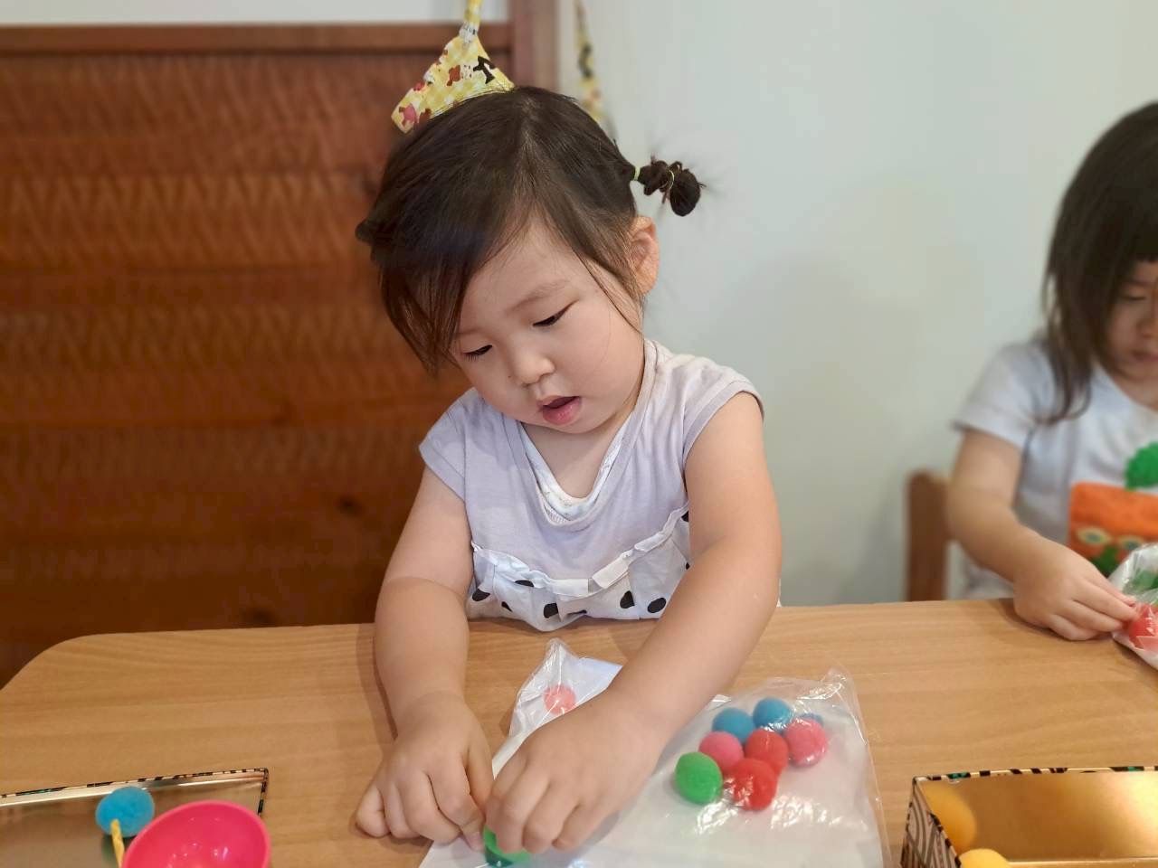 りす組さんやきりん組さんは指先を使った遊びに集中して取り組んでいますよ🙌🏻