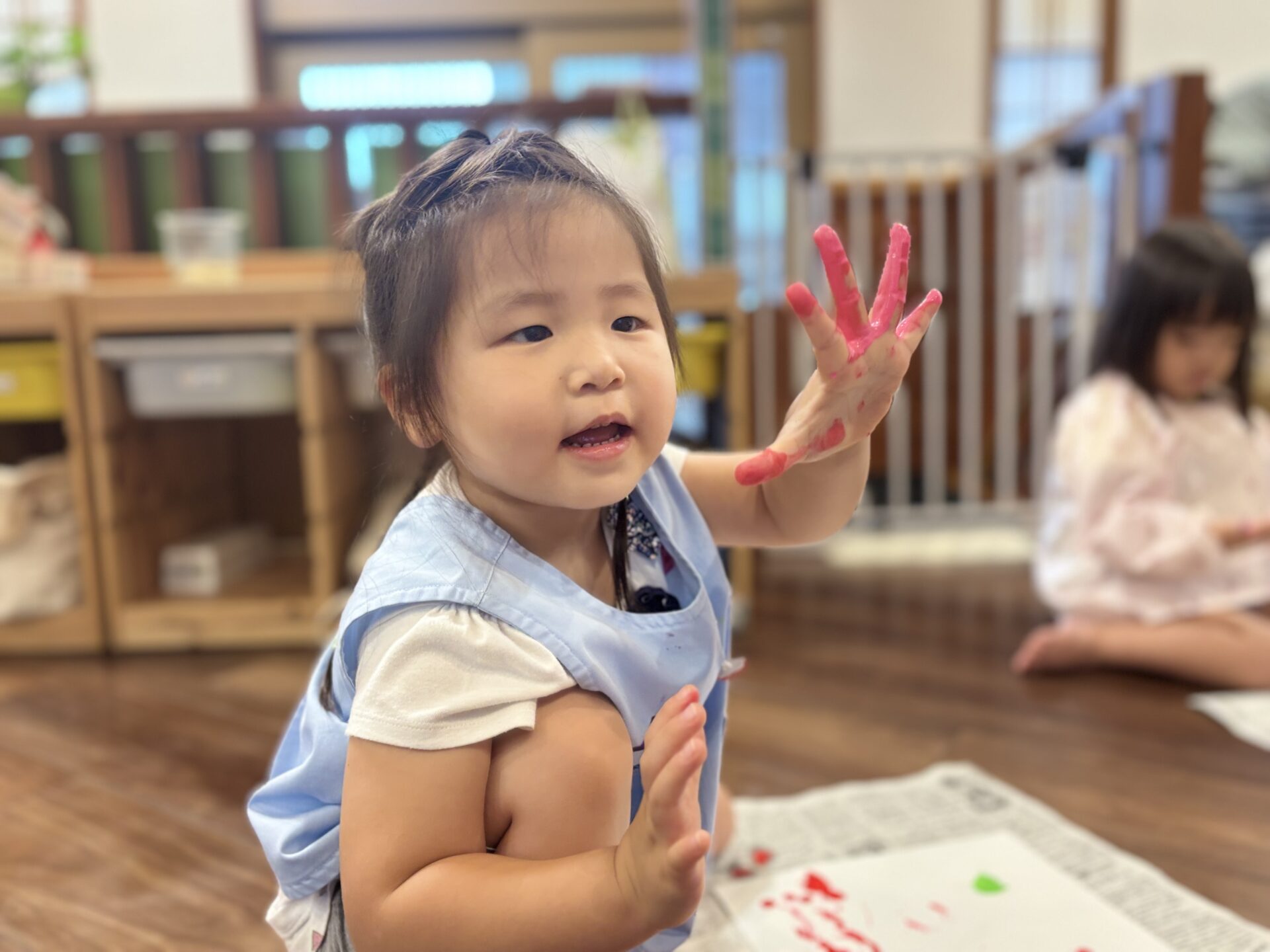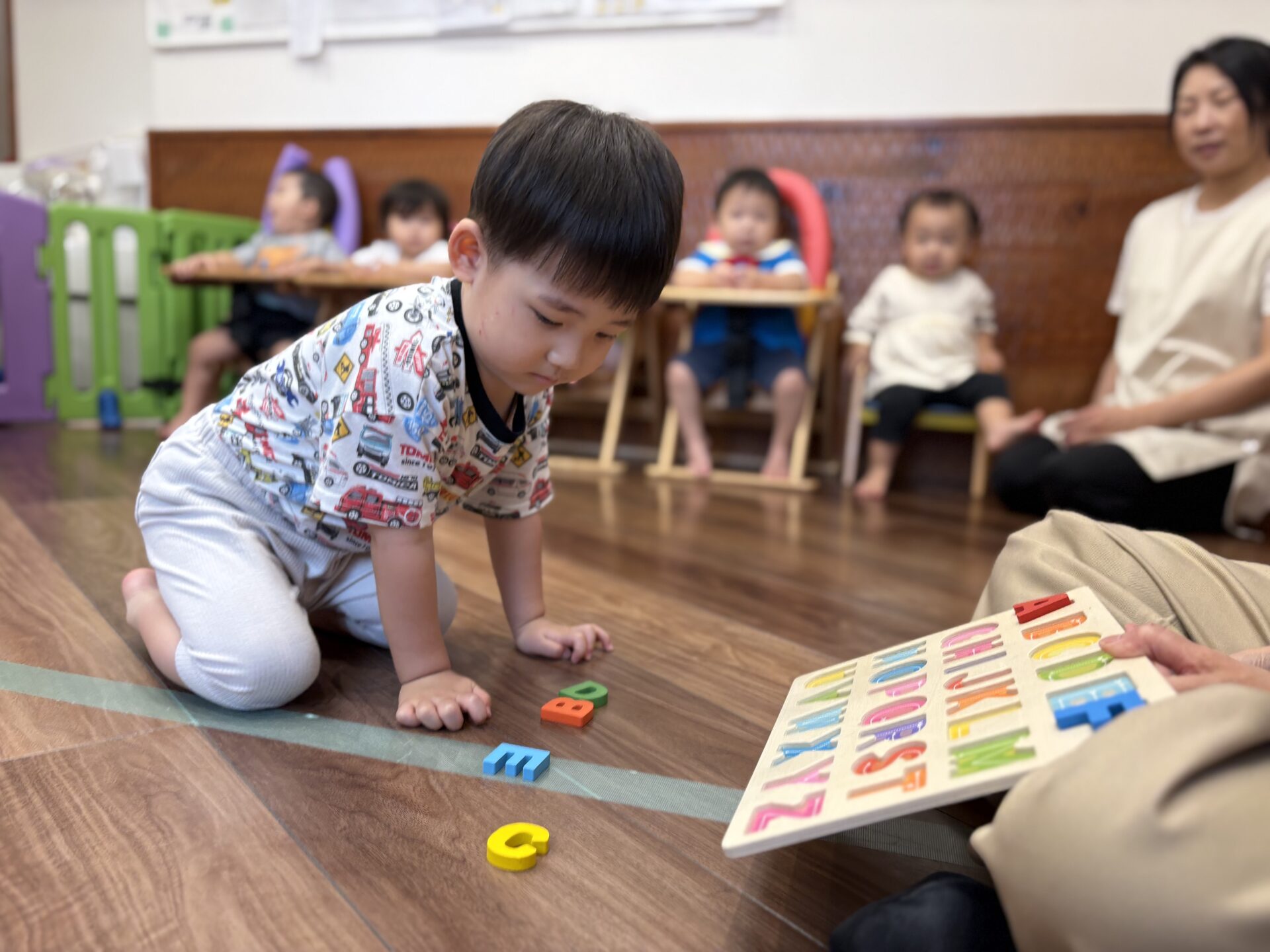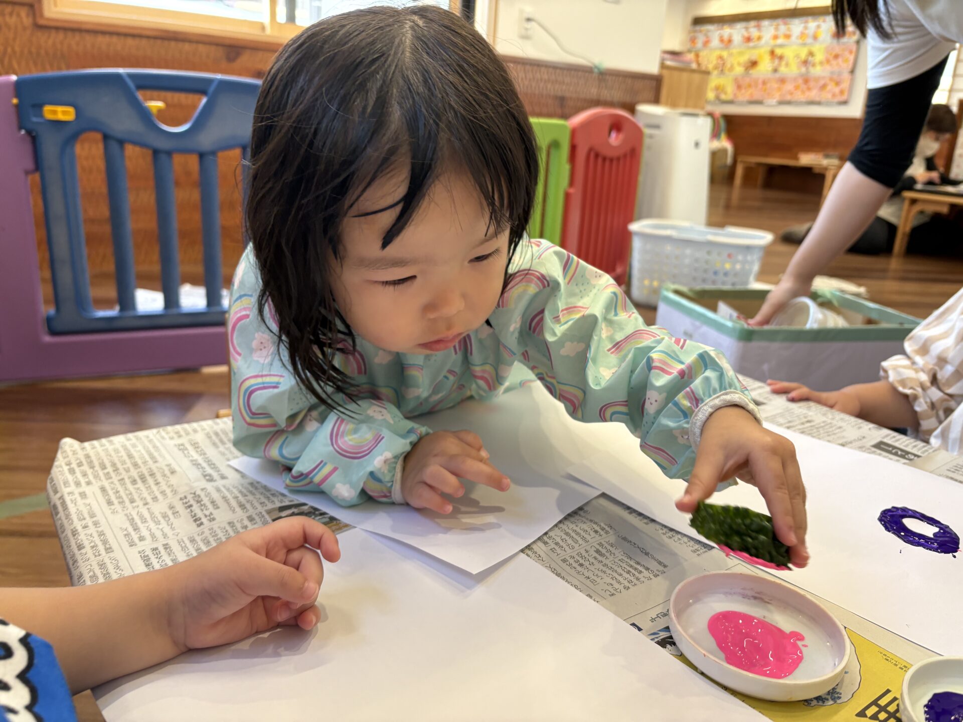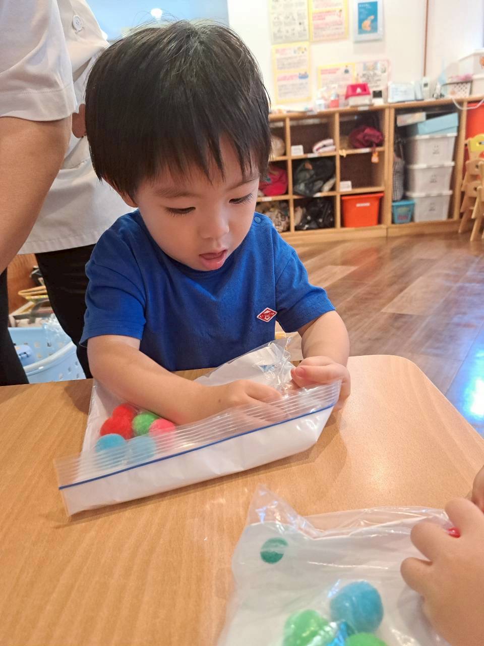 りす組さんやきりん組さんは指先を使った遊びに集中して取り組んでいますよ🙌🏻