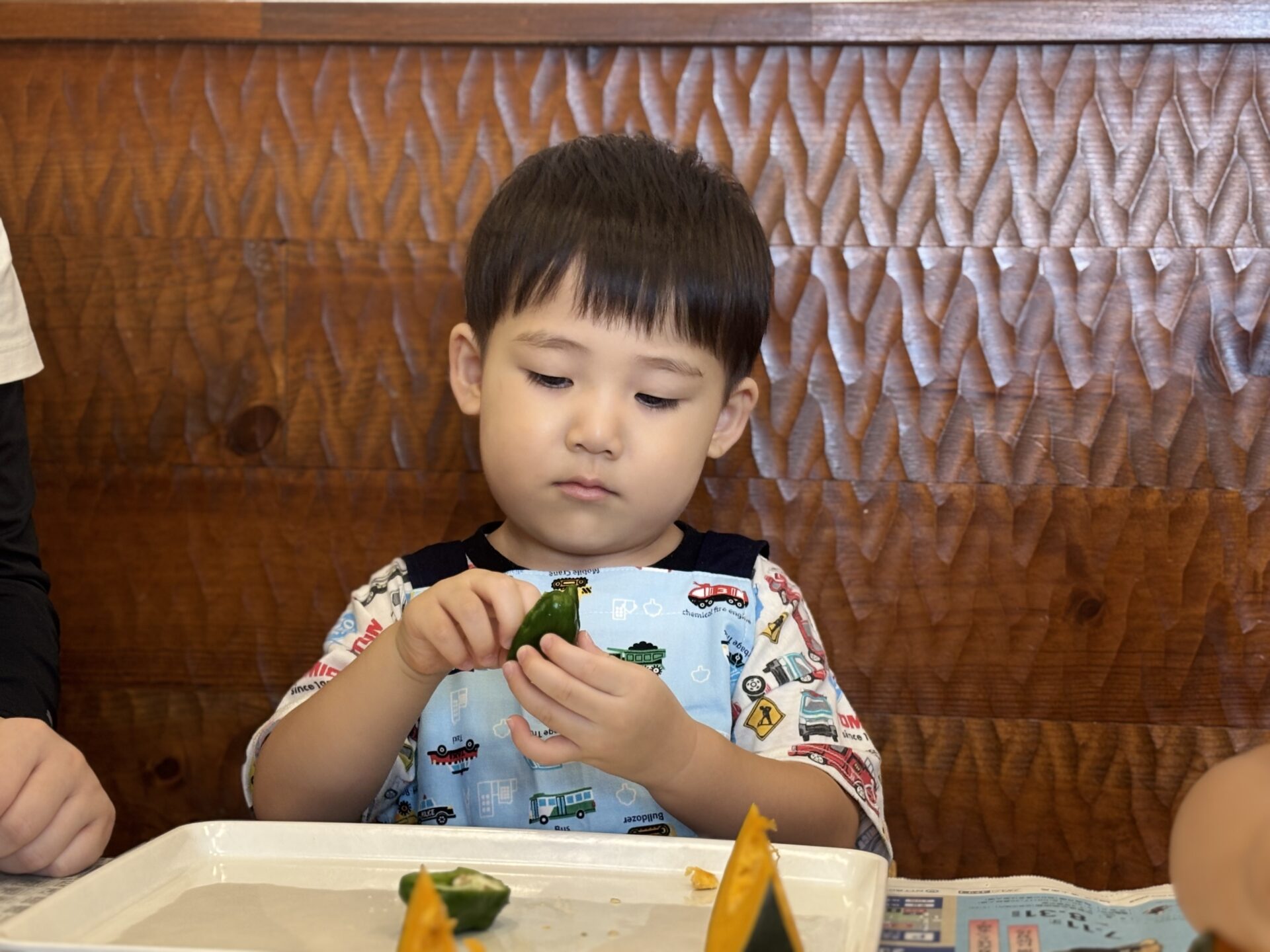 野菜を半分に切ってみると、中身に興味深々!
