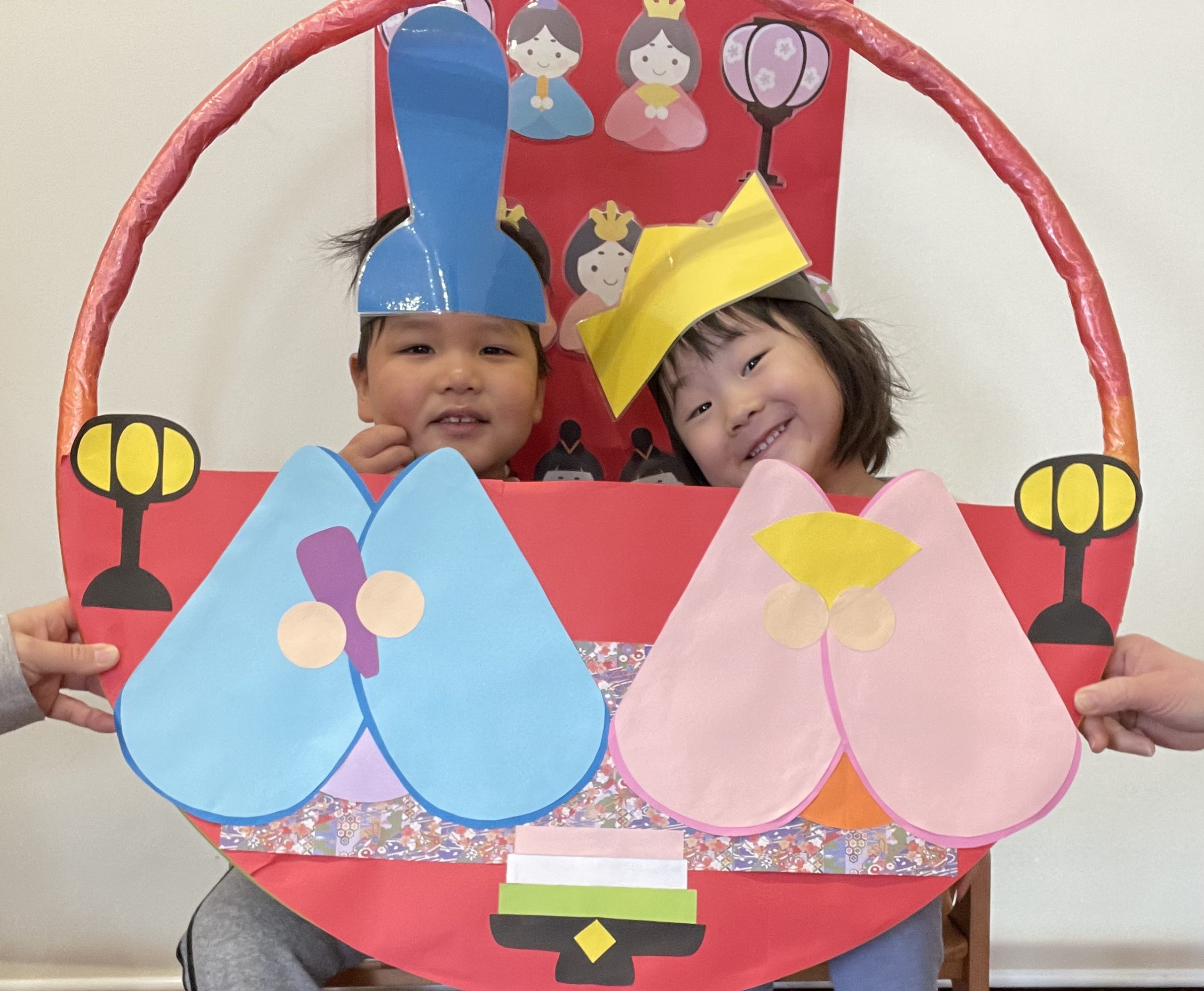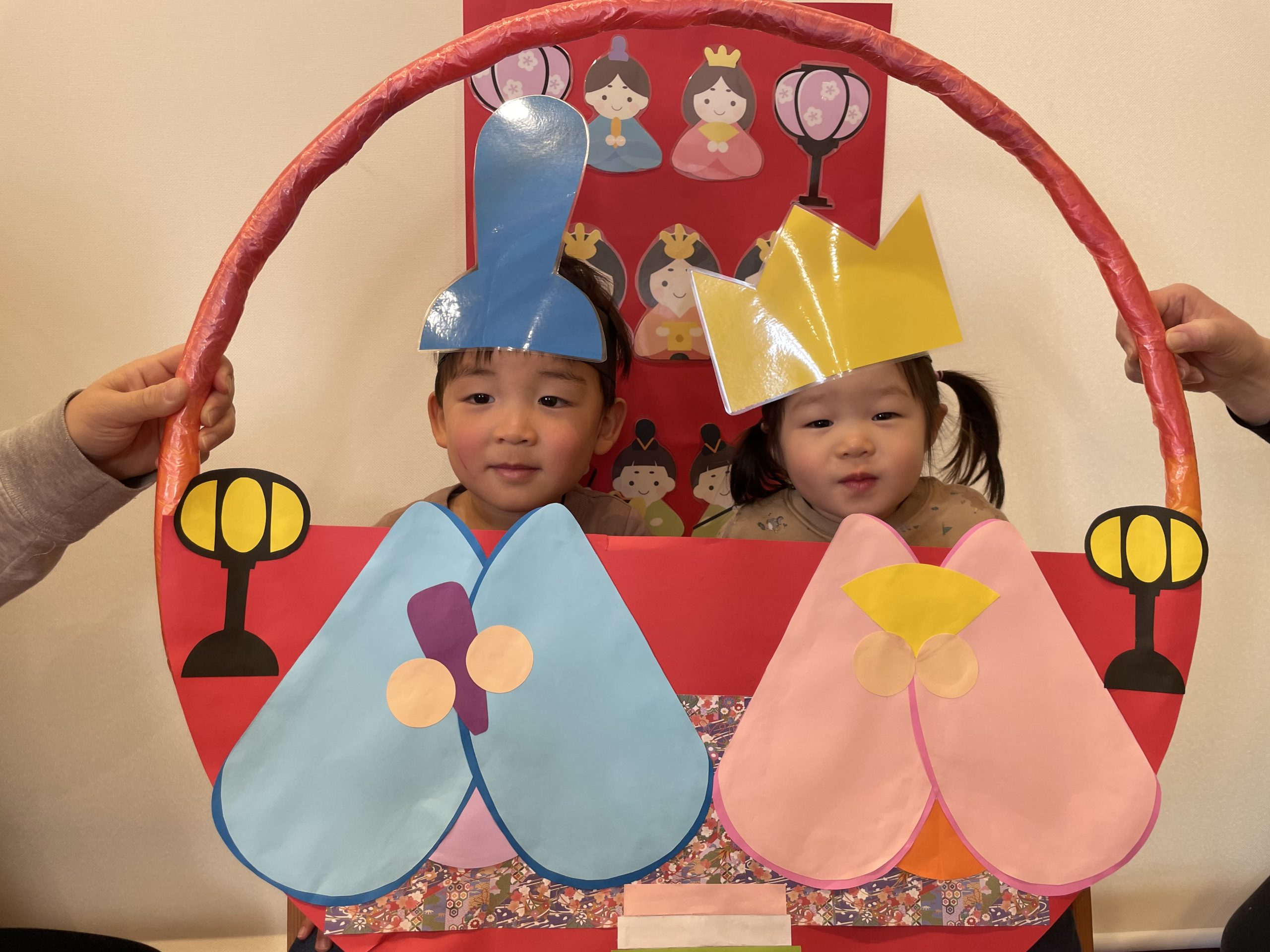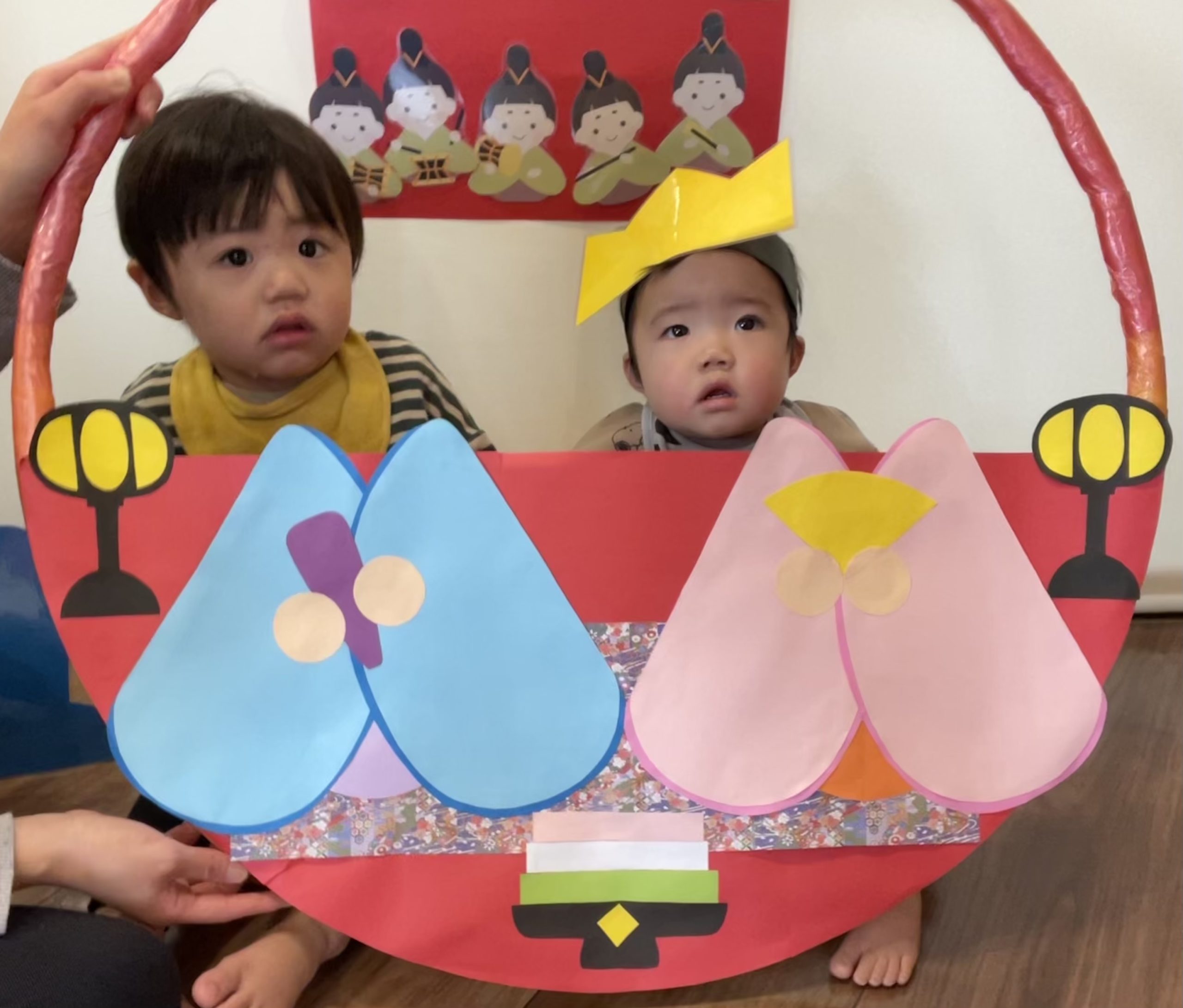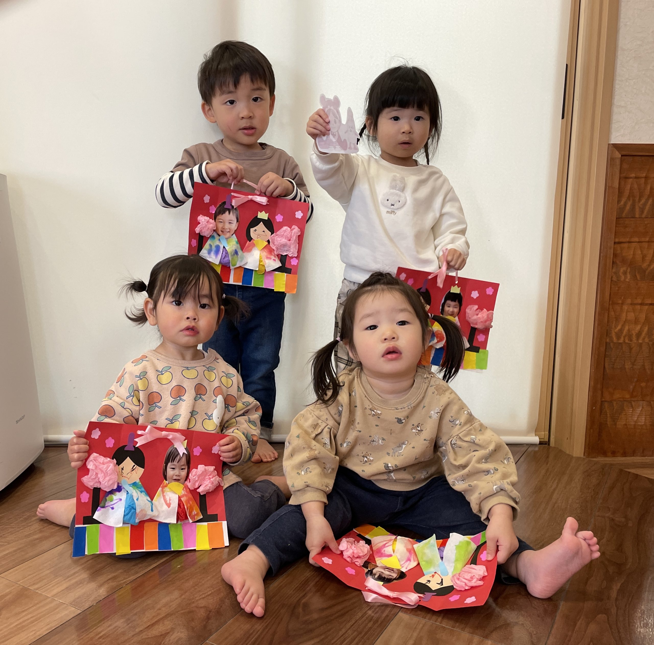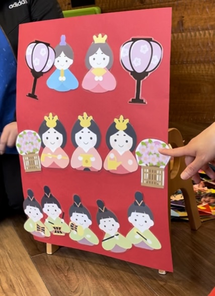 ひなまつりのお話しを聞いたり、歌に合わせて雛壇を飾りつけていきました🌸