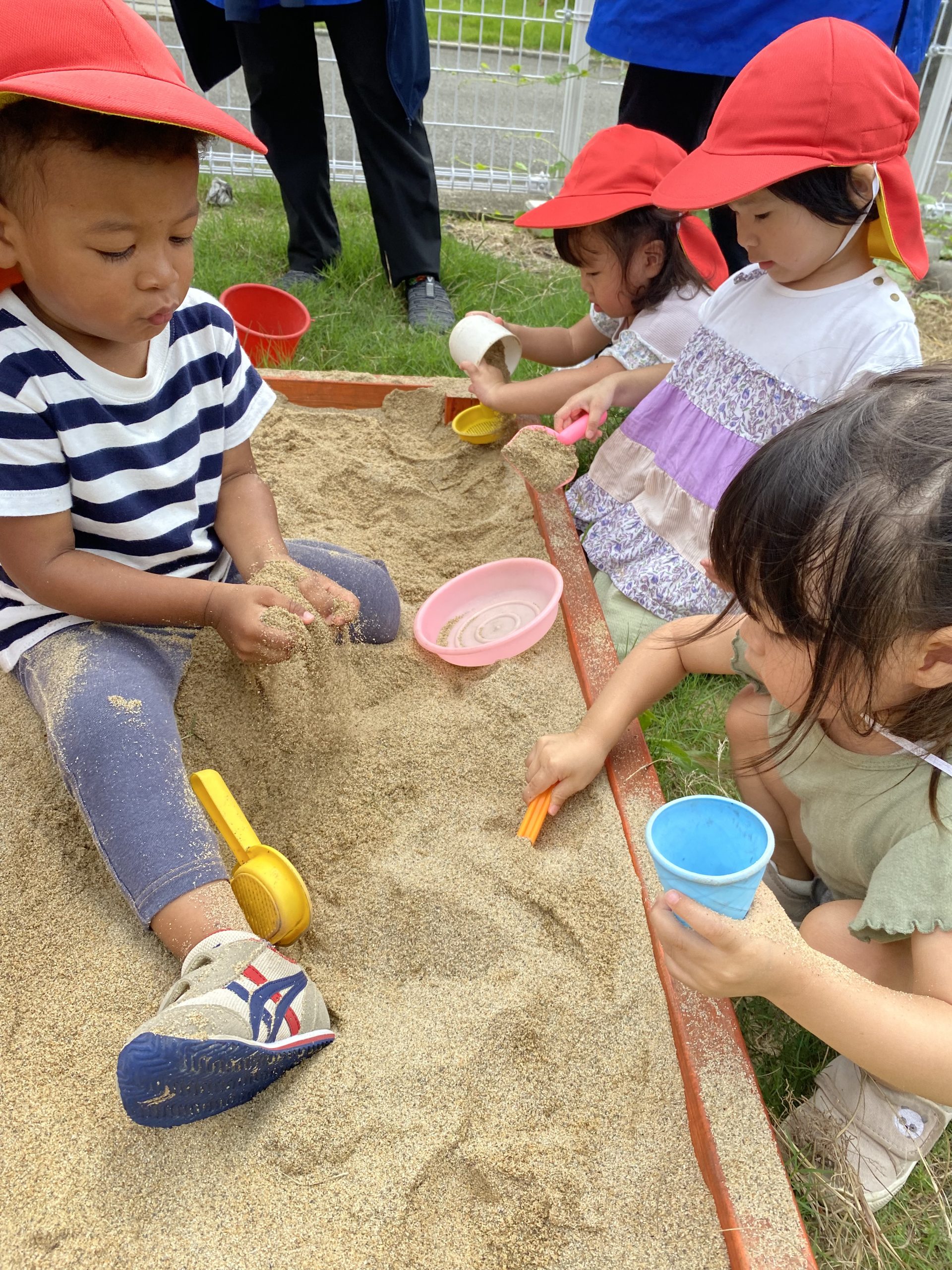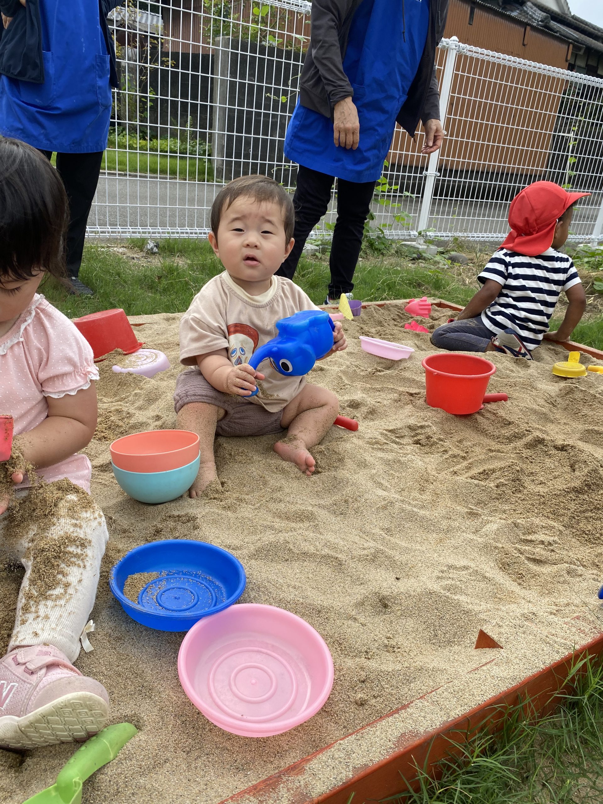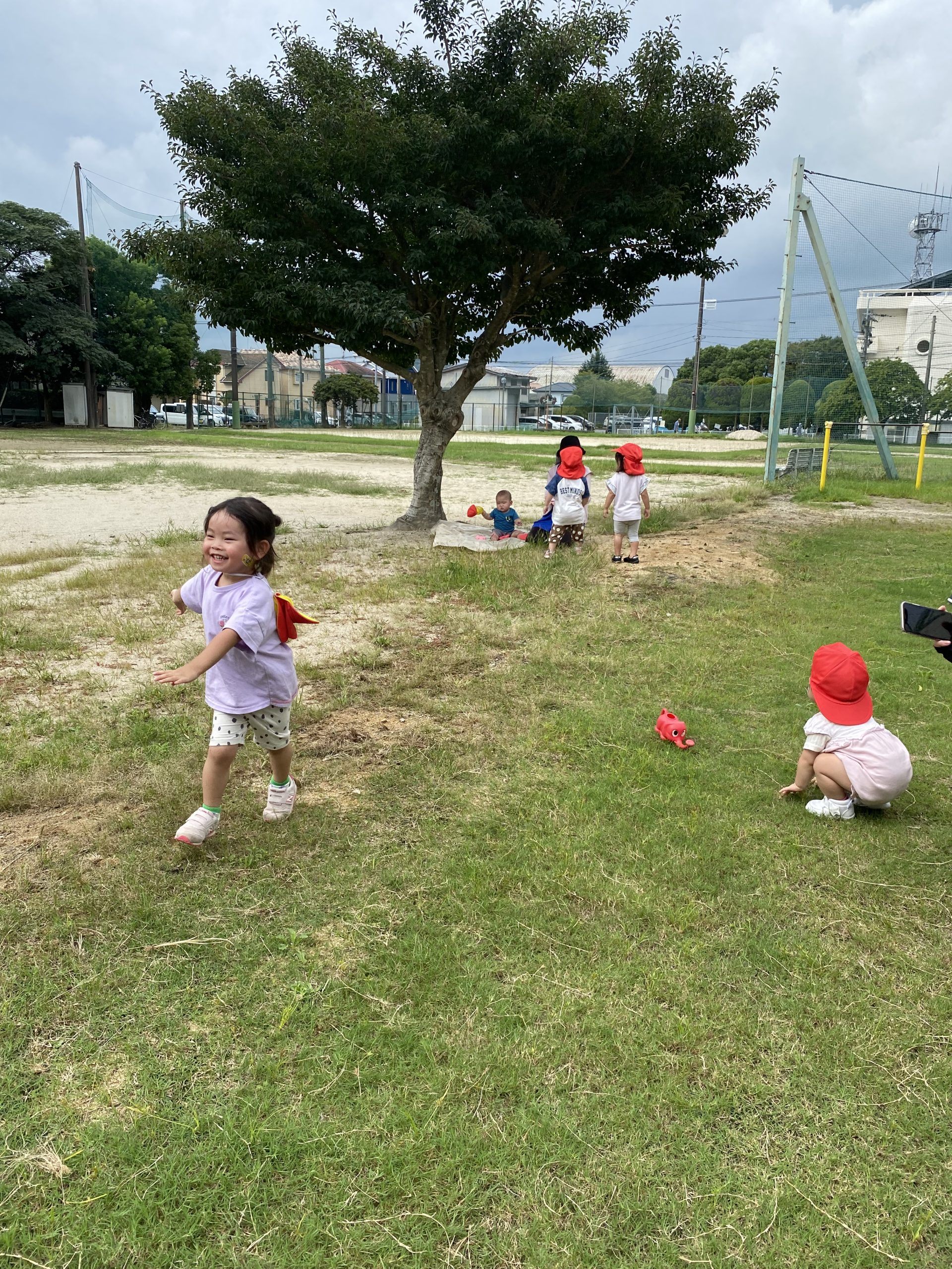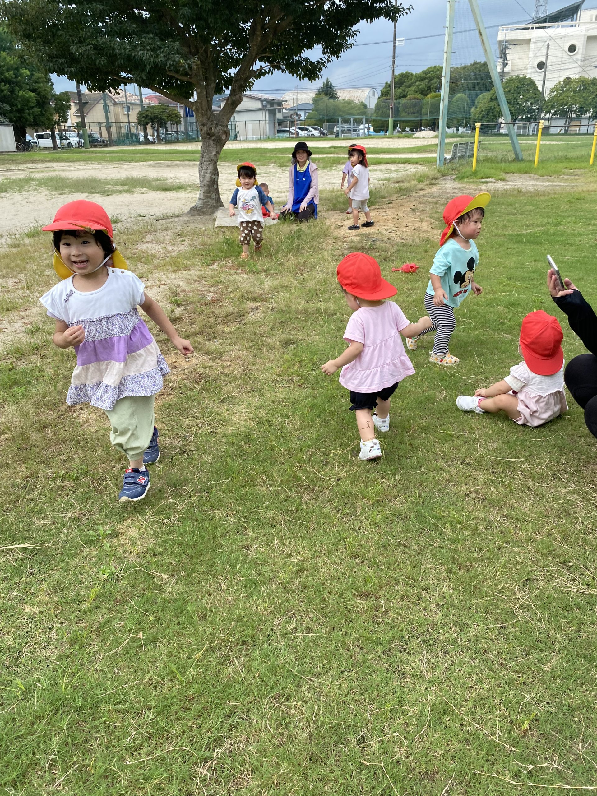 砂場遊びや、かけっこをして、お散歩を楽しんでいる子ども達です😄✨