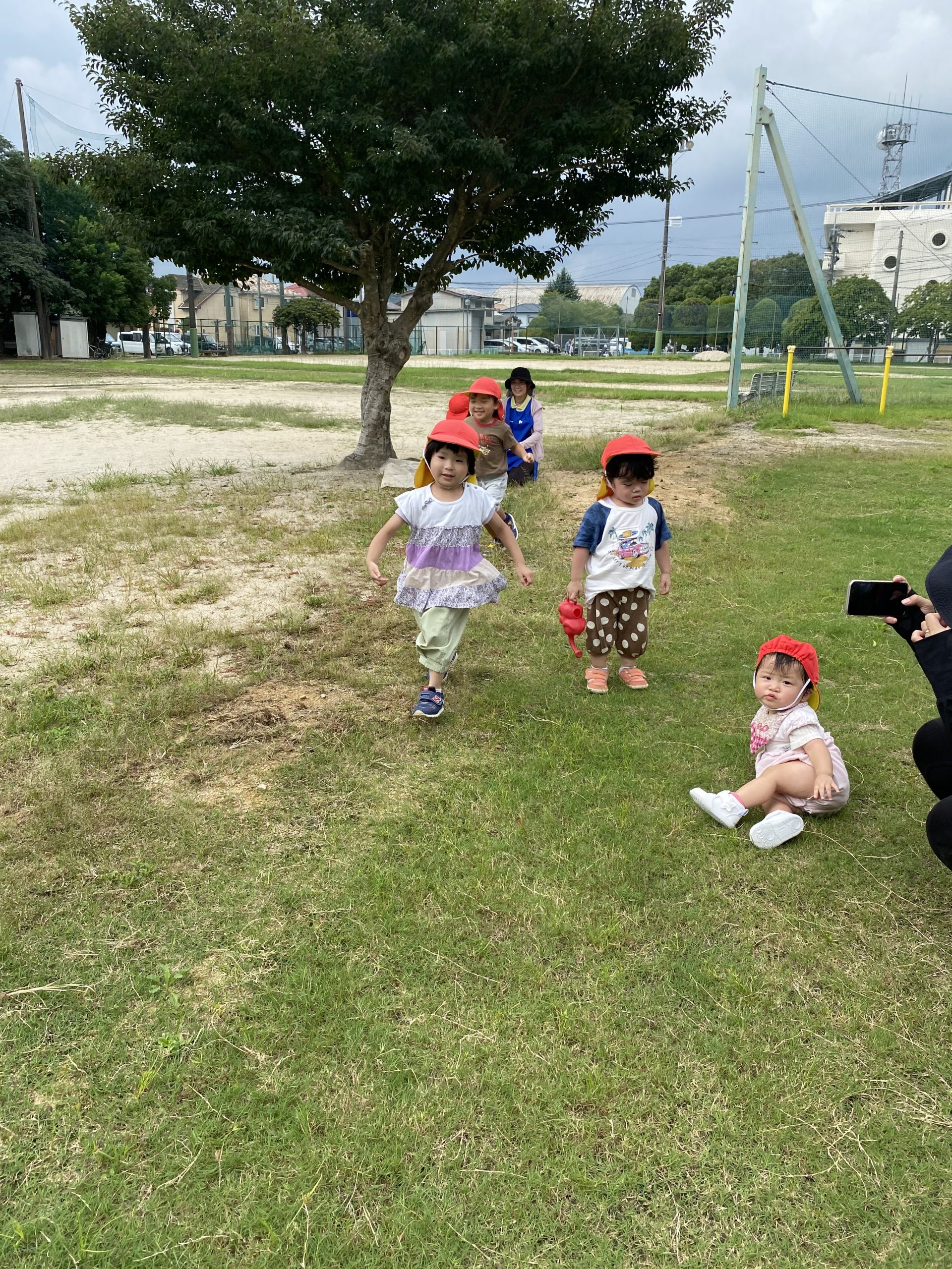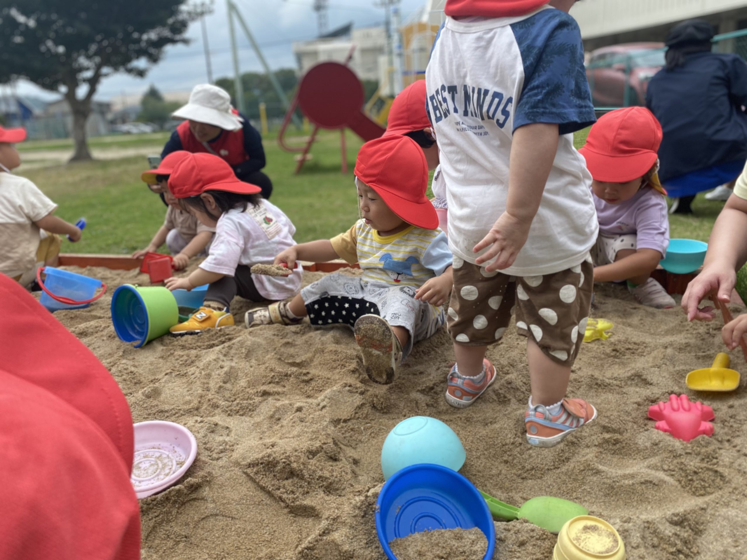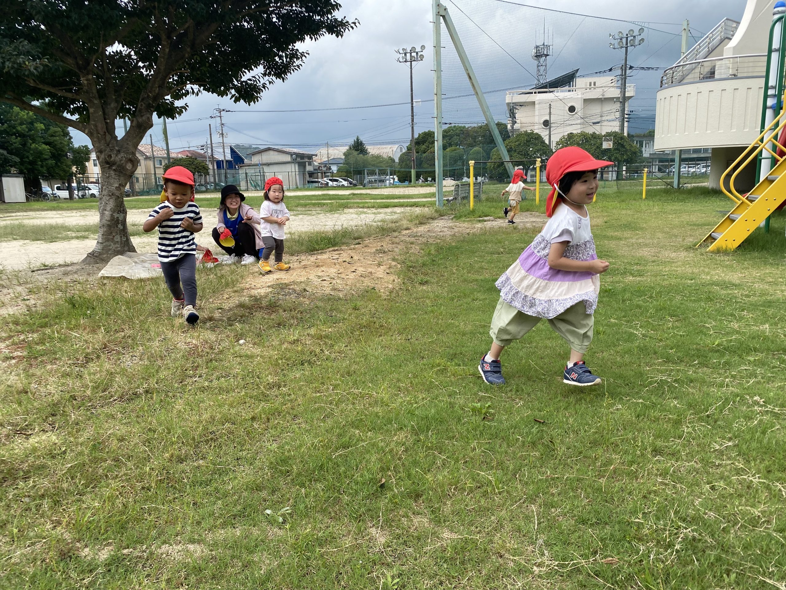 砂場遊びや、かけっこをして、お散歩を楽しんでいる子ども達です😄✨